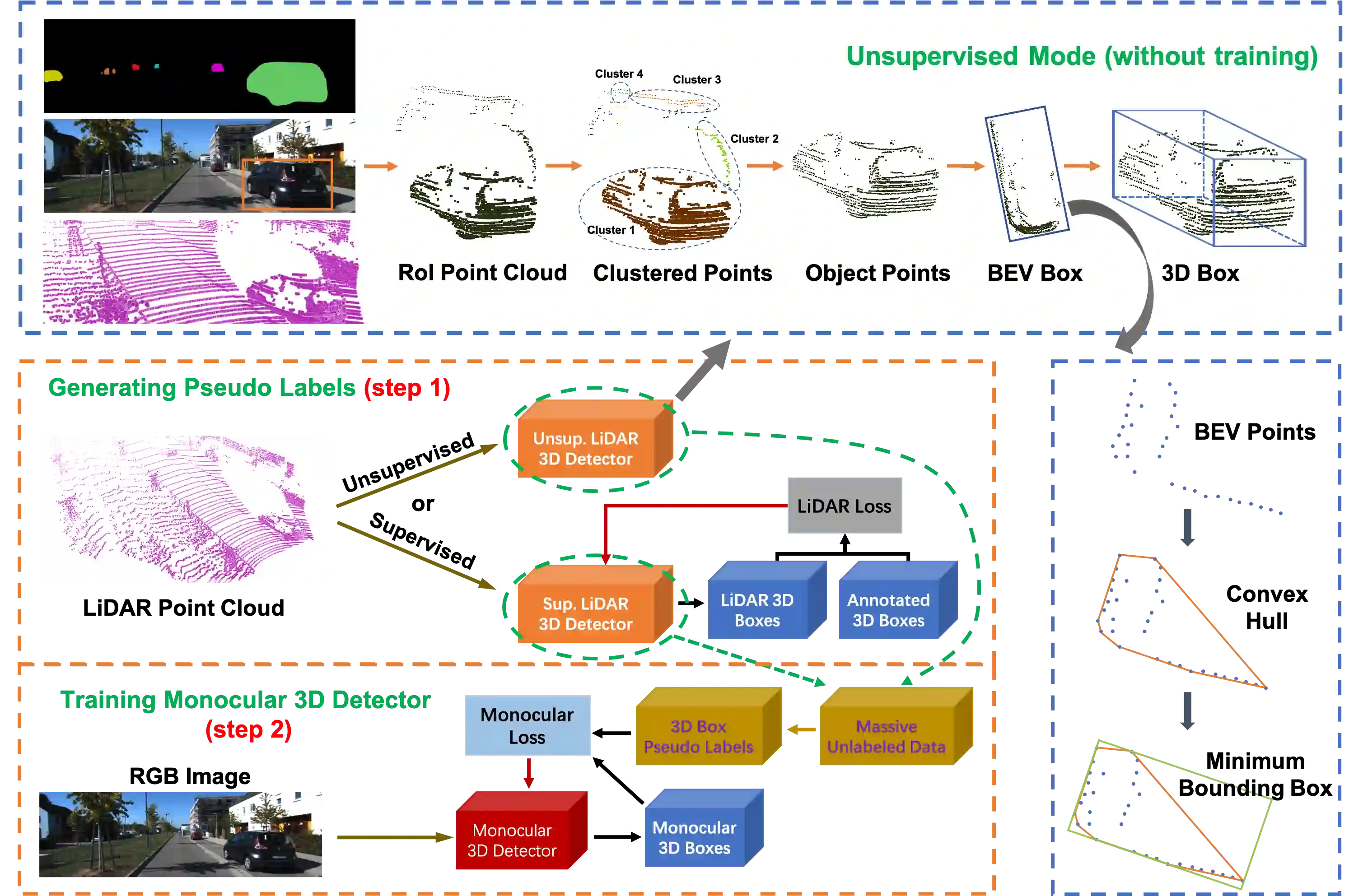 翻译:与基于 LiDAR 的方法相比,目前单体3D 检测率非常低。 准确性差的主要原因是由于单体图像的不正确性质而缺乏准确位置提示。 提供精确空间测量的LiDAR点云可以为单体方法的培训提供有益的信息。 为了使用LiDAR点云, 先前的工作预测它们形成深度地图标签, 随后训练一个密集的深度测深仪以提取清晰位置特征。 这种间接和复杂的方式引入了中间产品, 即深度地图预测, 花费了大量计算成本并导致亚优性性能。 在本文中, 我们提议 LPCG (LiDAR点点云导3D 单体天体探测), 它可以为使用LDAR 点云来指导对使用LDAR 点云进行单体3D 探测器的培训提供一个总体框架。 我们使用LDAR 点云来生成假体标签, 使单体3D 探测器能够从简单收集的大规模无标记的数据中获益。 LPCG在监督和不精确的基底线定位下工作良好地工作, 将快速检测到普通的3G 。