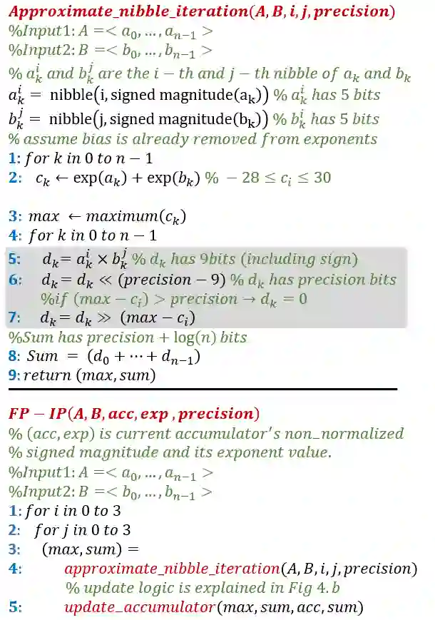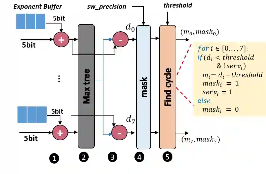 翻译:在本文中,我们提出一个混合精密卷动单元结构,支持不同的整数和浮动点(FP)精确度。拟议结构以低位内值产品单位为基础,根据时间分解实现更高的精确度。我们说明如何整合基于整数的建筑结构的FP计算,并评估FP计算支持产生的间接费用。我们争辩说,FP内产物的最大指数差异可能高达58位元,从而形成一个很大的校正逻辑。为了解决这一问题,我们从经验上说明,不需要超过26位比特产品位,在多数推断情况下,最多达8位比特。我们根据上述观察提出了新的优化,以减少FP计算硬件的硬件间接费用。我们根据模拟和硬件实施的经验结果显示,FP16的间接费用显著减少。在典型的混合精确实施中,拟议的结构在TFLLOPS/mm2和TOPS/mm2中实现了高达25%的改进,在TFLOPS/W和TPS/63W中提高了高达40%的功率,在TFLOPS/W中达到了46%。