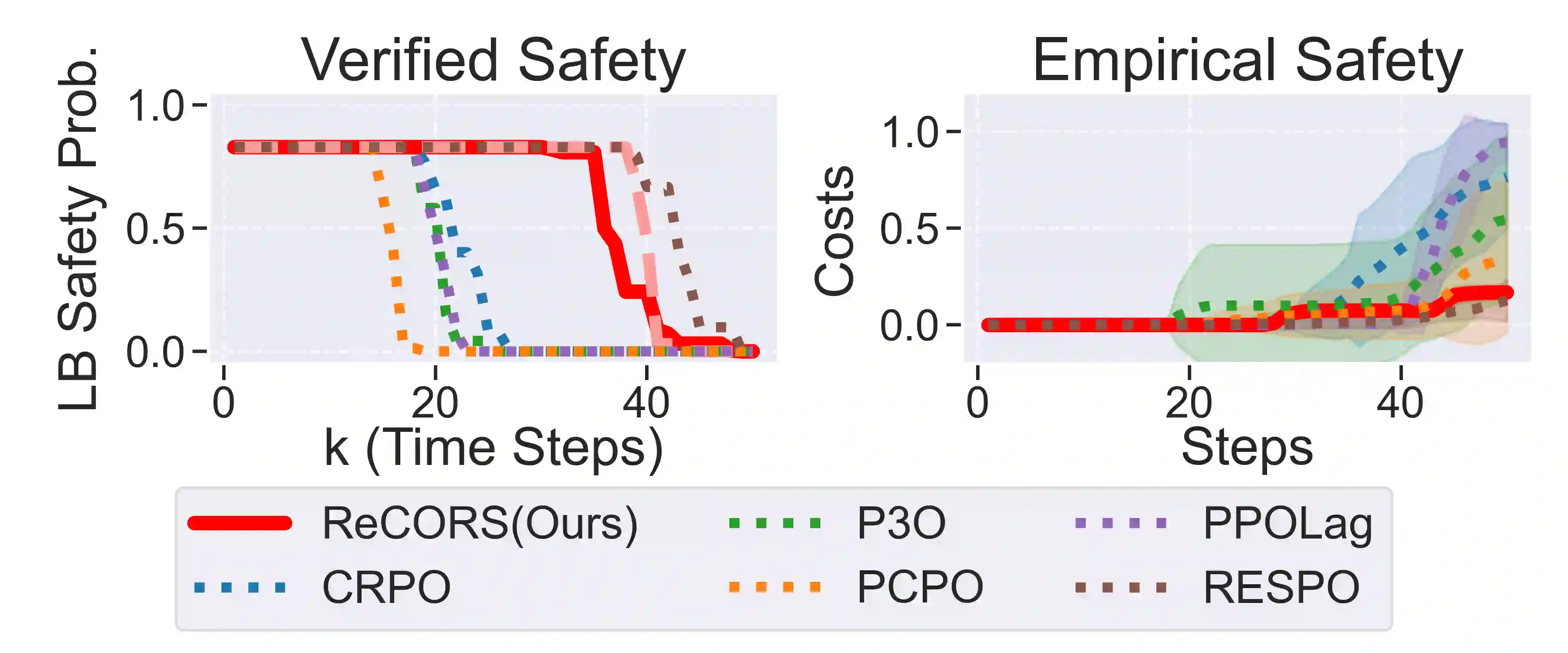 翻译:设计可证明的安全控制是可信自主系统的核心问题。然而,该领域现有研究大多假设系统动力学已知或确定,或要求状态与动作空间有限,这严重限制了应用范围。为突破此局限,我们提出一种针对未知动态系统的概率验证框架,该框架将共形预测与可达性分析相结合。具体而言,我们利用共形预测在每个时间步为未知动力学获取有效的置信区间,随后通过可达性分析验证系统在共形不确定性边界内是否保持安全性。进一步,我们提出一种算法框架用于训练控制策略,该策略在优化名义奖励的同时,还能在严格概率安全保证下最大化规划时域。我们在涵盖四个领域(倒立摆、车道保持、无人机控制与安全导航)的七种安全控制场景中评估所提方法,覆盖仿射与非线性安全规范。实验表明,我们学习的控制策略在保持高平均奖励的同时,实现了当前最强的可证明安全保证。