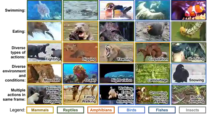 翻译:然而,现有的动物行为数据集在多个方面都有局限性,包括动物种类、数据样本和提供的任务数量有限,环境条件和观点的变化也有限。为了应对这些局限性,我们创建了一个庞大和多样化的数据集,即动物王国,提供多种附加说明的任务,以便能够更全面地了解自然动物行为。我们数据集中所使用的野生动物片段记录了各种环境的一天不同时间,这些环境包含背景、观点、光化和天气条件的差异。更具体地说,我们的数据集包含50小时附加说明的视频,用于将相关动物行为部分本地化,用于视频定位任务的长期视频,30K视频序列用于精细的多标签行动识别任务,以及33K框架用于表面估计任务,这与分布在6个主要动物类中有850种物种的多种多样的动物相对应。这样一个具有挑战性和综合性的数据集应能帮助社区开发、调整和评价各种先进的动物行为分析方法。此外,我们提议了一个合作行动识别(CARV) 模型,用于学习我们有希望的模型。