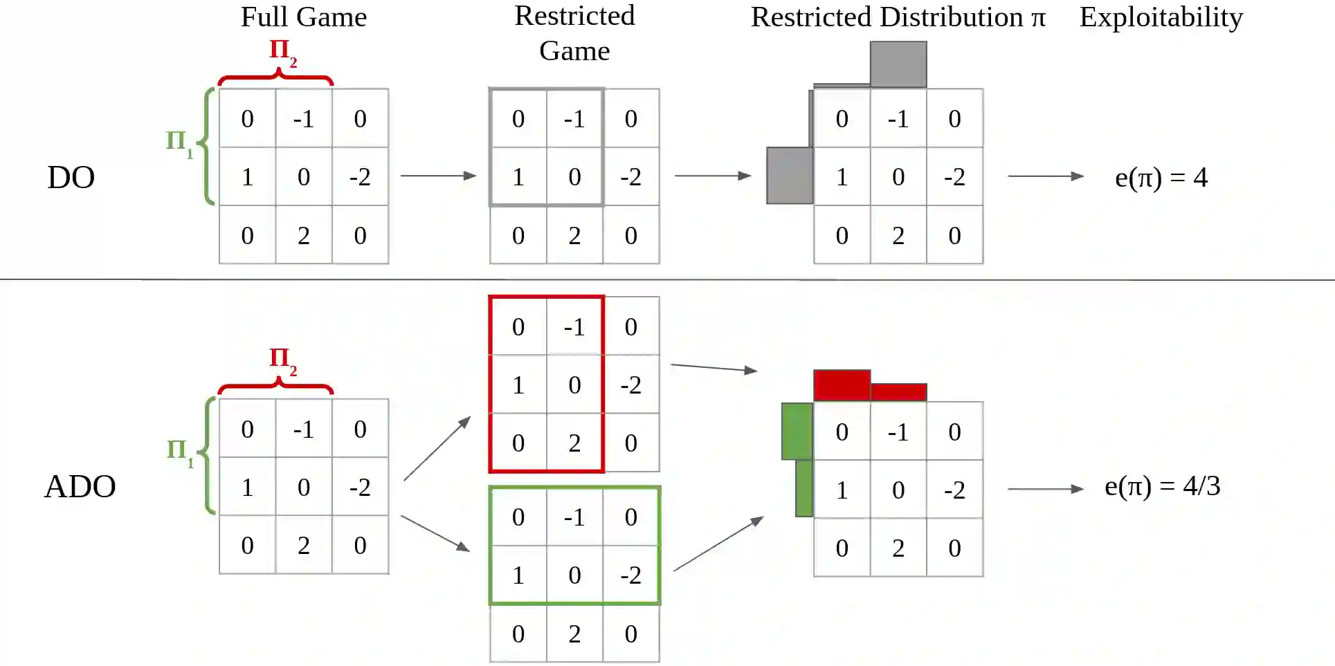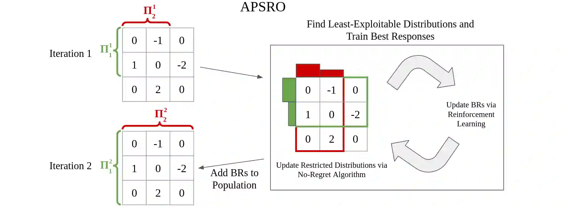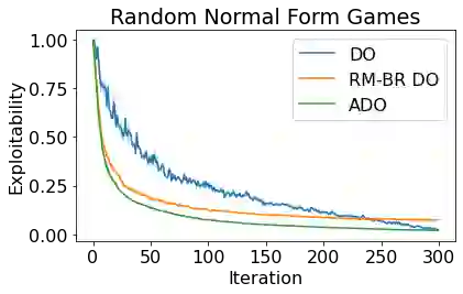 翻译:政策空间反应或触角(PSRO)是一种多试剂强化学习算法,在非常大型的双玩者零和游戏中实现了最先进的性能。 PSRO是基于表单双甲骨(DO)方法的,该算法保证与纳什均衡趋同,但可能会增加从一个迭代到另一个迭代的利用能力。我们提议一个表单双甲骨(ADO)法,用于两玩者零和游戏的双甲骨(ADO),该算法保证与纳什平衡趋近,同时降低从一个迭代到下一个迭代的利用能力。与DO不同,在DO中,限制的分布是基于每个玩家战略组形成的有限游戏,ADO发现每个玩家的有限分配方式,这种分配方式在完全、无限制的游戏中最大限度地减少其利用性能,但在任何政策下,我们还提出一种方法,即通过一个不重复的算法,根据最佳反应,称为RM-BRDRDO(APRO) 。最后,我们提议一个ADRO(APSRRO),这个版本,通过强化学习来计算最佳反应最佳的反应,通过最佳反应,通过最优的学习来计算出最佳的反应。在更低的利用能力和低的游戏中,我们展示。我们在的游戏中,我们展示和任意的利用能力,我们展示的利用性,我们展示的游戏中,我们显示比普通的利用能力。