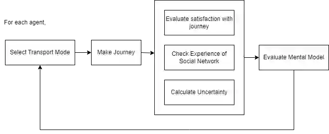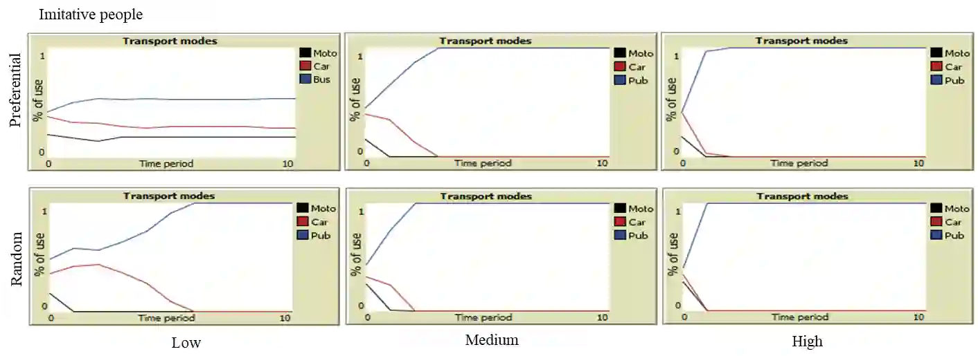 Agent-based simulations have been used in modeling transportation systems for traffic management and passenger flows. In this work, we hope to shed light on the complex factors that influence transportation mode decisions within developing countries, using Colombia as a case study. We model an ecosystem of human agents that decide at each time step on the mode of transportation they would take to work. Their decision is based on a combination of their personal satisfaction with the journey they had just taken, which is evaluated across a personal vector of needs, the information they crowdsource from their prevailing social network, and their personal uncertainty about the experience of trying a new transport solution. We simulate different network structures to analyze the social influence for different decision-makers. We find that in low/medium connected groups inquisitive people actively change modes cyclically over the years while imitators cluster rapidly and change less frequently.