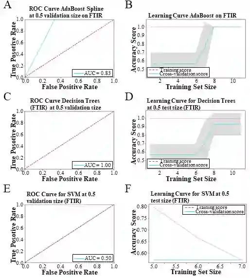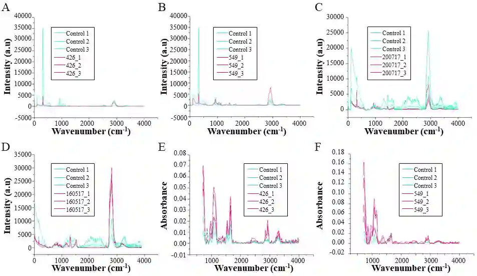 翻译:癌症的早期检测是医学上的一个挑战性问题。癌症患者的血液阴部通过混杂的秘密脂质脂质外细胞囊肿(EVs)丰富了血液中的癌症患者的血液阴部,这些血液中含有代表其起源细胞的复杂信息和生物标志,目前正在液体生物检查和癌症筛查领域对这些细胞进行研究。活性光谱谱为评估复杂生物样本中的结构性和生物物理特性提供了非侵入性的方法。在这项试点研究中,对从9个患者血液腹部提取的EV进行了多次拉曼分光谱检查,这些病人由四种不同的癌症亚型(染色癌、肝细胞癌癌、乳腺癌和胃癌)和5个健康病人组成,它们代表着一个复杂的信息和生物细胞标志。FTIR(Ferver Infred)的光谱测量为Raman分析提供了一种非侵入性方法,用于评估复杂的生物样本中的两种癌症14个子型。AdaBoost Romic Foral分类、决定树和对精度的精度机器(SVM)的精度测量方法是:在实验室的精度上,这些精度的精度是实验室的精度的精度的精度的精度的精度,其精度的精度的精度的精度,其精度的精度的精度的精度是:在18次的精度的精度值的精度的精度的精度的精度的精度的精度的精度的精度的精度的精度的精度的精度的精度的精度的精度是,其精度的精度的精度的精度的精度值。