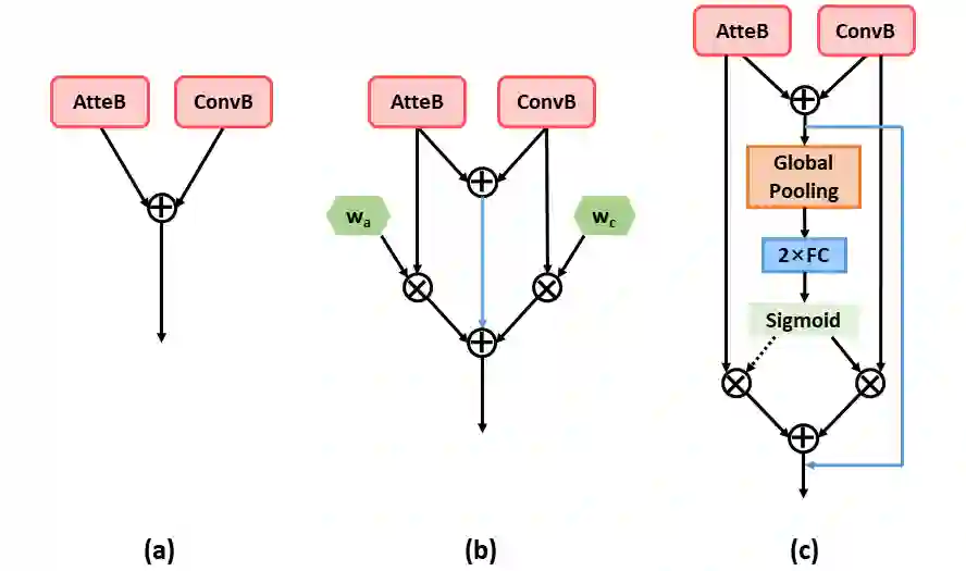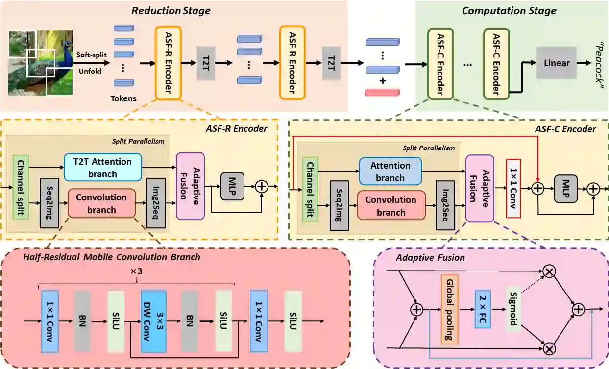 Neural networks for visual content understanding have recently evolved from convolutional ones (CNNs) to transformers. The prior (CNN) relies on small-windowed kernels to capture the regional clues, demonstrating solid local expressiveness. On the contrary, the latter (transformer) establishes long-range global connections between localities for holistic learning. Inspired by this complementary nature, there is a growing interest in designing hybrid models to best utilize each technique. Current hybrids merely replace convolutions as simple approximations of linear projection or juxtapose a convolution branch with attention, without concerning the importance of local/global modeling. To tackle this, we propose a new hybrid named Adaptive Split-Fusion Transformer (ASF-former) to treat convolutional and attention branches differently with adaptive weights. Specifically, an ASF-former encoder equally splits feature channels into half to fit dual-path inputs. Then, the outputs of dual-path are fused with weighting scalars calculated from visual cues. We also design the convolutional path compactly for efficiency concerns. Extensive experiments on standard benchmarks, such as ImageNet-1K, CIFAR-10, and CIFAR-100, show that our ASF-former outperforms its CNN, transformer counterparts, and hybrid pilots in terms of accuracy (83.9% on ImageNet-1K), under similar conditions (12.9G MACs/56.7M Params, without large-scale pre-training). The code is available at: https://github.com/szx503045266/ASF-former.
