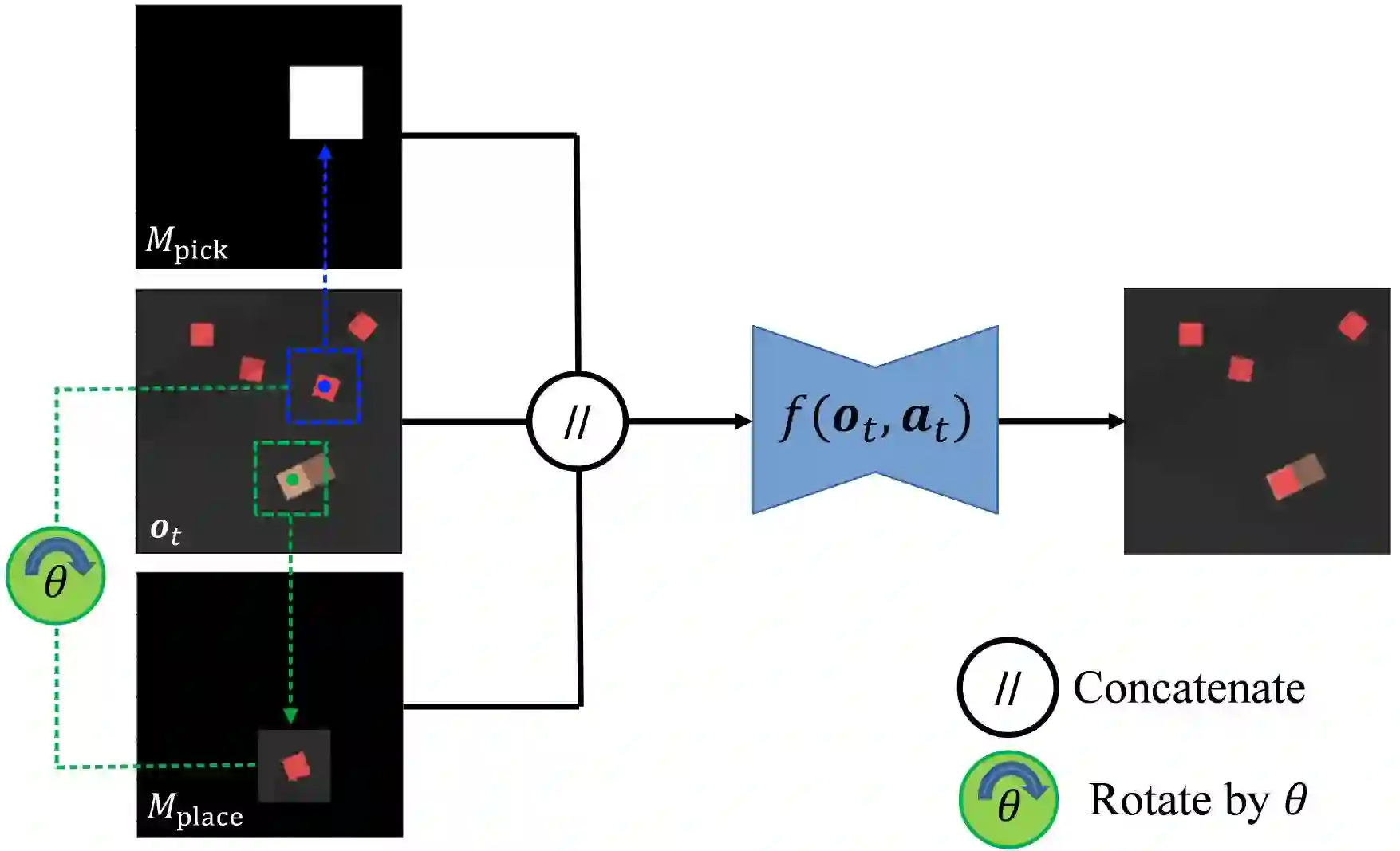 翻译:重新排列任务已被确定为智能机器人操作的关键挑战,但很少有方法能够精确地构建不可见的结构。我们提议了一个选择和地点重新排列操作的视觉前瞻模型,以便有效地学习。此外,我们开发了一个多式行动提案模块,该模块以“目标-有条件的运输者网络”为基础,这是一种最先进的模仿学习方法。我们基于图像的任务规划方法,即具有视觉视野的运输者,只能从少量的数据中学习,以零发方式概括到多种不可见的任务。TVF能够改进模拟和真正的机器人实验中现代任务最先进的模仿学习方法的性能。特别是,在模拟实验中,不可见任务的平均成功率从55.4%提高到78.5%,在实际机器人实验中从30%提高到63.3%,但仅提供数十项专家演示。视频和代码可在我们的项目网站上查阅:https://chirikjianb.github.io/tvf/ 网站查阅:https://chirikianlab.github.io/tvf/