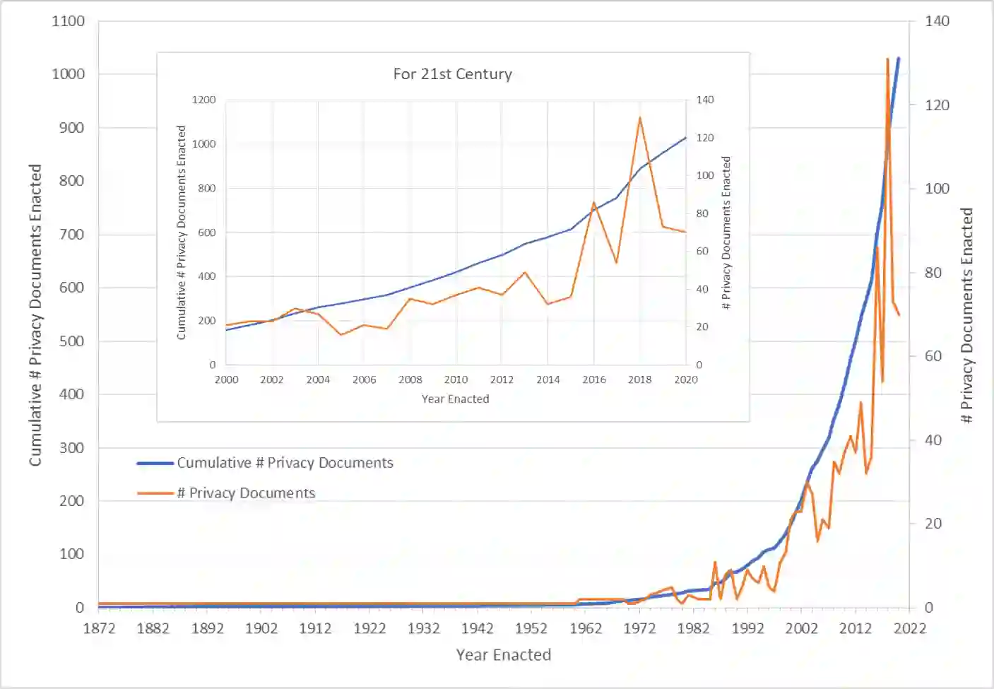 The landscape of privacy laws and regulations around the world is complex and ever-changing. National and super-national laws, agreements, decrees, and other government-issued rules form a patchwork that companies must follow to operate internationally. To examine the status and evolution of this patchwork, we introduce the Government Privacy Instructions Corpus, or GPI Corpus, of 1,043 privacy laws, regulations, and guidelines, covering 182 jurisdictions. This corpus enables a large-scale quantitative and qualitative examination of legal foci on privacy. We examine the temporal distribution of when GPIs were created and illustrate the dramatic increase in privacy legislation over the past 50 years, although a finer-grained examination reveals that the rate of increase varies depending on the personal data types that GPIs address. Our exploration also demonstrates that most privacy laws respectively address relatively few personal data types, showing that comprehensive privacy legislation remains rare. Additionally, topic modeling results show the prevalence of common themes in GPIs, such as finance, healthcare, and telecommunications. Finally, we release the corpus to the research community to promote further study.