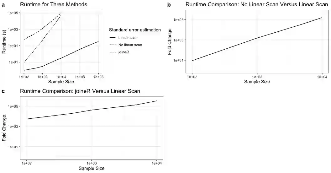 翻译:纵向和相互竞争的风险数据的半参数联合模型计算成本很高,而目前实施的这些模型对大型生物库数据的影响并不大。本文件在纵向和相互竞争的风险生存数据的半参数联合模型中确定并解决了一些关键的计算障碍。我们通过开发和实施定制的线性扫描算法,将各种组成部分的计算复杂性从O(n)2美元或O(n)3美元降低到O(n)美元,其中包括数字整合、风险计算和标准错误估计,其中以美元为主题。我们利用模拟和真实的世界生物库数据,证明这些线性扫描算法在10-4美元时产生了高达数十万倍的急剧速度,有时将运行时间从几天缩短到几分钟。我们根据拟议的长度和时间-时间-时间-活动数据的联合模型算法开发了一个R包件“快速”和“快速”软件,在风险和没有相互竞争的情况下将其公布在\url{http://CRAN.R-projro.org/package=FARMY}的综合档案网络(CRANAN)上。