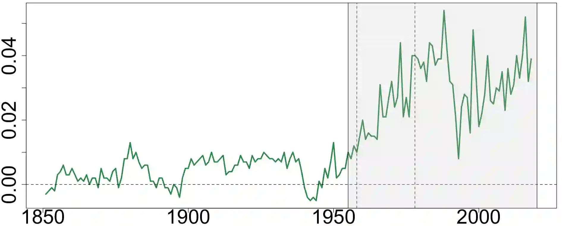 翻译:本文利用历史数据估算了作为线性状态空间系统(EBM-SS模型)的两部分能源平衡模型(EBM-SS模型),这是混合层温度、深海层温度和辐射力的联合模型。EBM-SS模型允许模拟非常态强迫、为潜在过程纳入多种数据源以及处理缺失的观测。我们用最大可能性估算了1955-2020年全球水平观测数据集的EBM-SS模型。我们在实验估计和模拟中显示,利用多种数据源进行潜伏过程会减少参数估计的不确定性。当EBM-SS模型与8个全球观测平均地表温度(GMST)异常系列相匹配时,物理参数估计数和根据代表集中路径(RCP)设想的GMST预测可与组合模型5(CMIP5)模型和温室气体诱导气候变化评估气候模拟模型(MAGICC)的预测相比较。这提供了仅使用简单的气候模型和历史记录即可产生有意义的GMST预测的证据。