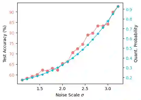 The rise of IoT devices has prompted the demand for deploying machine learning at-the-edge with real-time, efficient, and secure data processing. In this context, implementing machine learning (ML) models with real-valued weight parameters can prove to be impractical particularly for large models, and there is a need to train models with quantized discrete weights. At the same time, these low-dimensional models also need to preserve privacy of the underlying dataset. In this work, we present RQP-SGD, a new approach for privacy-preserving quantization to train machine learning models for low-memory ML-at-the-edge. This approach combines differentially private stochastic gradient descent (DP-SGD) with randomized quantization, providing a measurable privacy guarantee in machine learning. In particular, we study the utility convergence of implementing RQP-SGD on ML tasks with convex objectives and quantization constraints and demonstrate its efficacy over deterministic quantization. Through experiments conducted on two datasets, we show the practical effectiveness of RQP-SGD.