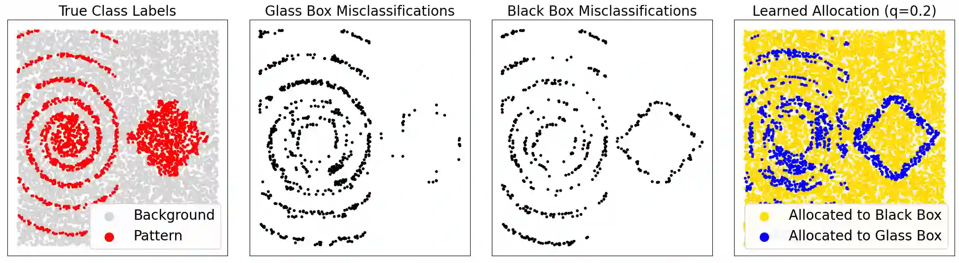 In this paper we propose a method for the optimal allocation of observations between an intrinsically explainable glass box model and a black box model. An optimal allocation being defined as one which, for any given explainability level (i.e. the proportion of observations for which the explainable model is the prediction function), maximizes the performance of the ensemble on the underlying task, and maximizes performance of the explainable model on the observations allocated to it, subject to the maximal ensemble performance condition. The proposed method is shown to produce such explainability optimal allocations on a benchmark suite of tabular datasets across a variety of explainable and black box model types. These learned allocations are found to consistently maintain ensemble performance at very high explainability levels (explaining $74\%$ of observations on average), and in some cases even outperforming both the component explainable and black box models while improving explainability.