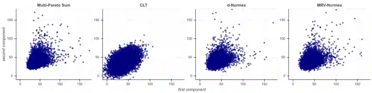 翻译:我们构建了一个对重尾随机矢量总和分布的精确近似值, 将中度和极端行为结合起来。 它将所谓的“ 诺尔梅克斯 ” 方法从一个单向框架扩展为多变量框架。 我们建议两种可能的多诺尔摩斯分布, 名为$d$- Normex 和 MRV- Normex 。 两者都依靠高斯分布来通过 CLT 描述平均行为, 而两个版本之间的差别来自使用精确分布或 EV 定理的最大值。 主要的参数为每个版本的多诺尔摩斯分布向总分布的趋同率, 假设在考虑 MRV- normex 案例时, 母向随机矢量的规范有第二顺序的常规变异属性 。 使用基于几何孔的 Q- plots, 提出了对母向量矢量的不同依赖结构的数值说明和比较。