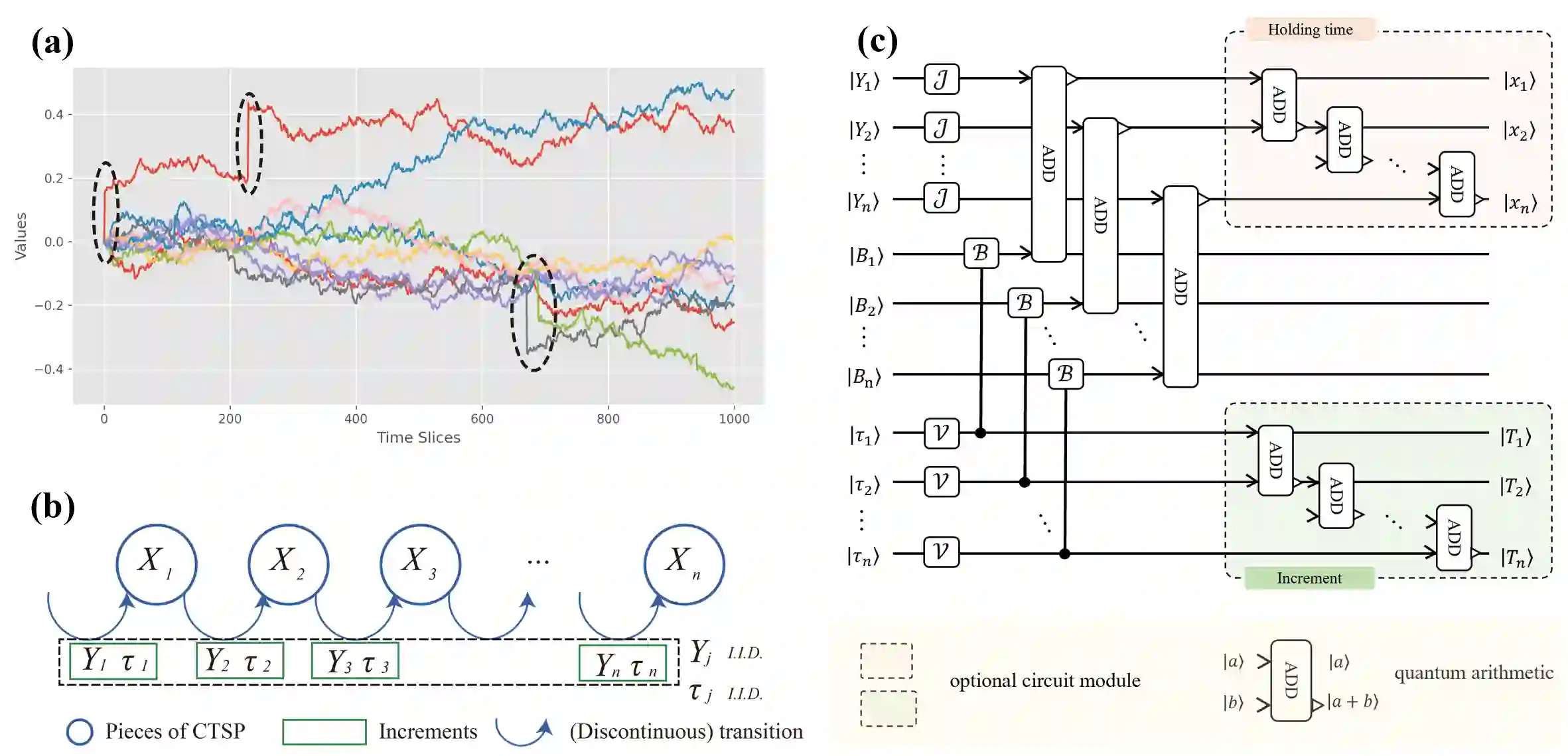 The continuous time stochastic process is a mainstream mathematical instrument modeling the random world with a wide range of applications involving finance, statistics, physics, and time series analysis, while the simulation and analysis of the continuous time stochastic process is a challenging problem for classical computers. In this work, a general framework is established to prepare the path of a continuous time stochastic process in a quantum computer efficiently. The storage and computation resource is exponentially reduced on the key parameter of holding time, as the qubit number and the circuit depth are both optimized via our compressed state preparation method. The desired information, including the path-dependent and history-sensitive information that is essential for financial problems, can be extracted efficiently from the compressed sampling path, and admits a further quadratic speed-up. Moreover, this extraction method is more sensitive to those discontinuous jumps capturing extreme market events. Two applications of option pricing in Merton jump diffusion model and ruin probability computing in the collective risk model are given.