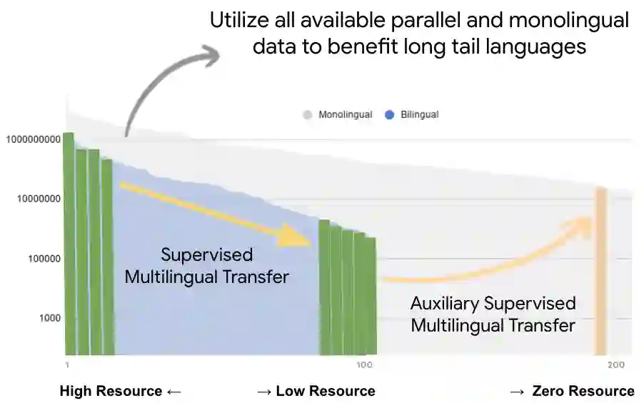 翻译:实现所有人类语文对口之间的普遍翻译是机器翻译(MT)研究的神圣基石。虽然在大规模多语种MT方面最近取得的进展距离实现这一目标更近一步,但越来越明显的是,仅仅通过对更平行数据的培训而扩大多语种MT系统是无法扩展的,因为为低资源和非以英语为中心的语言对口提供有标签的数据是不容限制的。为此,我们提出了一个务实的办法,以建立涵盖数百种语言的多语种的多语种MT模式,利用受监督和自我监督的混合目标,视不同语言对口的数据提供情况而定。我们证明,这两个培训模式之间的协同作用使该模式能够在零资源环境下产生高质量的翻译,甚至超过中、低资源语言的监督翻译质量。我们进行了一系列广泛的实验,以了解多语种监督的程度、域不匹配以及平行和单语种数据的数量对我们自我强化的多语种模式的质量的影响。为了展示该方法的可扩展性,我们训练了200多种语言的模型,并展示了我们今后在零资源环境下进行高水平翻译的成绩。