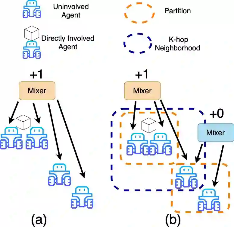 翻译:本文提出了一种新颖的协作式多智能体强化学习方法,称为**基于局部性的因子化多智能体演员-评论家算法**。现有的最先进算法,例如FACMAC,依赖于全局奖励信息,这可能无法准确反映去中心化系统中单个机器人动作的质量。我们将局部性概念整合到评论家学习中,其中强相关的机器人在训练期间形成分区。同一分区内的机器人彼此影响更大,从而带来更精确的策略评估。此外,我们构建了一个依赖图来捕获机器人之间的关系,以促进分区过程。这种方法缓解了维度灾难,并防止机器人使用无关信息。我们的方法通过关注局部奖励并利用基于分区的学习来提高训练效率和性能,从而改进了现有算法。我们在三个环境中评估了Loc-FACMAC的性能:走廊、多倒立摆和有界协作导航。我们探讨了分区大小对性能的影响,并将结果与基线MARL算法(如LOMAQ、FACMAC和QMIX)进行了比较。实验表明,如果局部性结构定义得当,Loc-FACMAC的性能最高可超越这些基线算法108%,这表明在演员-评论家框架中利用局部性结构可以提高MARL性能。