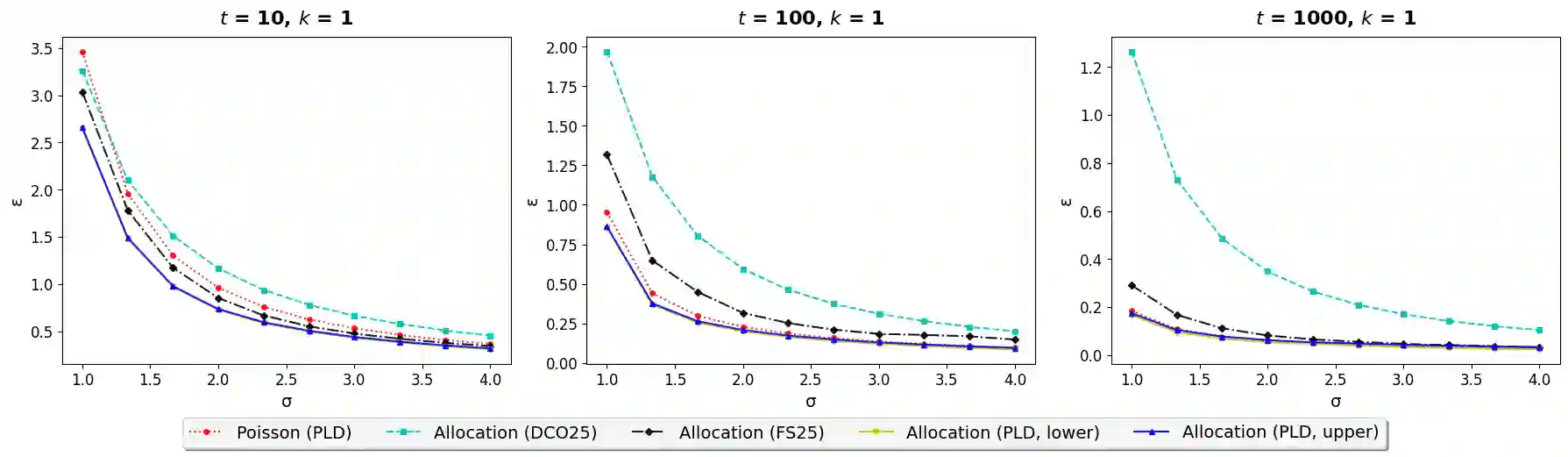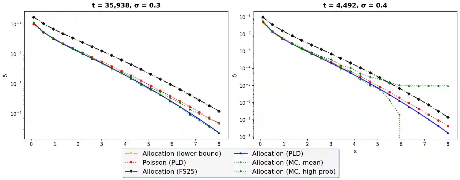 翻译:我们研究一种采样方案的隐私放大特性,该方案中用户数据被用于从$t$步序列(或集合)中随机均匀选取的$k$步。该采样方案近期已被应用于差分隐私优化(Chua等人,2024a;Choquette-Choo等人,2025)和通信高效的高维隐私聚合(Asi等人,2025)领域,其效用优势相较于标准泊松采样已得到验证。针对该采样方案的理论分析(Feldman & Shenfeld,2025;Dong等人,2025)得出的边界虽接近泊松采样,但仍存在两个显著缺陷:首先,在实际应用中,由于分析过程中的近似处理,所得隐私参数往往不够紧致;其次,计算所得参数无论是曲棍球散度还是Renyi散度,在隐私损失核算中都会引入额外开销。本研究证明,应用于任意差分隐私算法的随机分配机制,其隐私损失分布均可被高效计算。当应用于高斯机制时,我们的结果表明随机分配的隐私-效用权衡至少与泊松子采样相当。特别地,随机分配更适用于通过DP-SGD进行训练。为支持这些计算,本研究基于隐私损失分布实现的概念,开发了通用隐私损失核算的新工具。该概念使我们能够将精确的隐私损失核算扩展到子采样领域,而此前这类分析需要针对具体噪声机制进行人工设计。