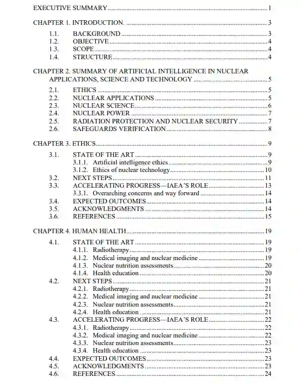 人工智能是指一系列技术的集合,这些技术能够以类似于人类逻辑和推理的方式跟踪复杂问题。机器学习技术学习如何在大量数据的基础上完成特定的任务。人工智能技术正在呈指数级发展,已经能够对来自各种来源的大量数据进行分类和解释,以执行各种任务,并帮助应对世界上许多最紧迫的挑战。人工智能具有巨大的潜力来加速许多核领域的技术发展,从核医学到水资源管理,再到核科学和工业。2021年,国际原子能机构主办了核技术与应用人工智能技术会议,旨在提供一个国际性、跨领域的论坛,讨论和促进在核科学、技术与应用、辐射防护、核安全和保障核查等领域的合作。目的是确定这些领域今后活动的优先次序以及原子能机构如何能够支持这些活动的执行。这是首次召开此类会议,也是一次反思人工智能与核技术融合的伦理考虑的机会。本出版物提供了当前技术状态的概述,概述了挑战并确定了加速核应用、人工智能科学和技术的机会。原子能机构感谢起草和审查这份出版物的贡献者所做的工作。负责这份出版物的原子能机构官员是物理和化学科学司的M. Barbarino。