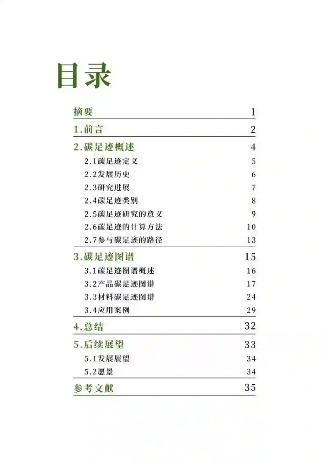 本文通过对碳足迹的科普,系统地介绍了碳足迹的定义内涵、发展历史、研究进展、意义和现状,分别列出政府、企业、公众参与到碳足迹工作的途径,并详细说明了碳足迹对各个群体的价值。文章列出了多个与日常生活和工业生产相关的产品与材科的碳足迹图谱,给出了政府、企业、个人对碳足迹图谱的使用方法,供大众参考、借鉴。