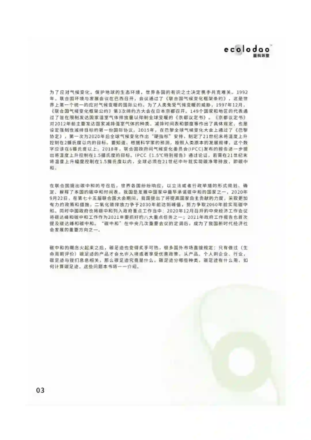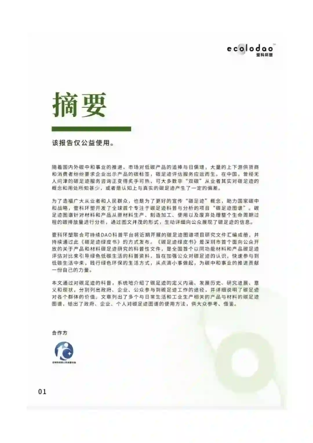 壹科环塑联合可持续DAO科普平台将近期开展的碳足迹图谱项目研究文件汇编成册,并持续通过此《碳足迹绿皮书》的方式发布。《碳足迹绿皮书》是深圳市首个面向公众开放的关于产品和材料碳足迹研究的科普性文件,是全国首个以同功能材料和产品碳足迹评估对比来引导绿色低碳生活的科普资料,旨在加强公众对碳足迹的认识,快速参与到低碳生活中来,践行绿色环保的生活方式,从点滴小事做起,为碳中和事业的推进贡献一份自己的力量。
