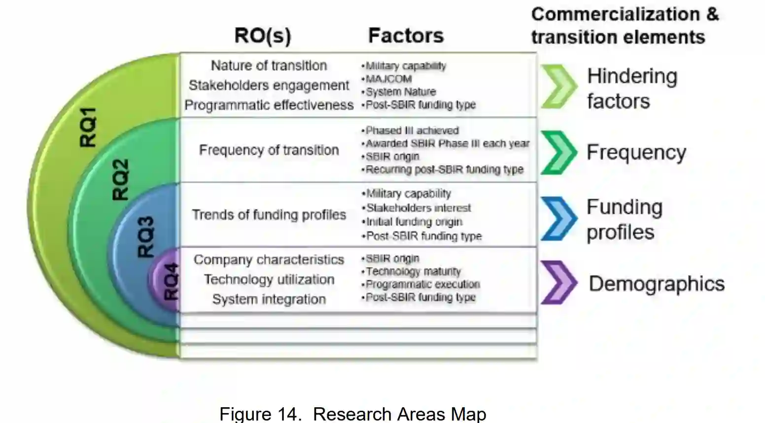 本研究发现,在参与美国防部 SBIR 流程的企业生命周期中,过渡率为 44%,商业化率为 65%。此外,数据中最常见的阻碍因素包括:系统集成、主要技术适应性、政府管理、利益相关者参与和资金缺口。数据显示,当企业员工超过 250 人时,SBIR 计划的目标就会崩溃。最后,获得 110 项奖励的企业达到了实现 SBIR 计划目标的最佳点。这项研究的结果将为国防部制定 SBIR 投资政策提供参考。