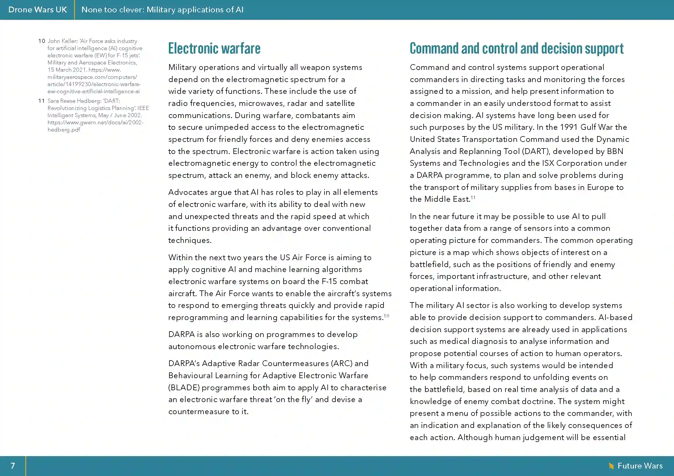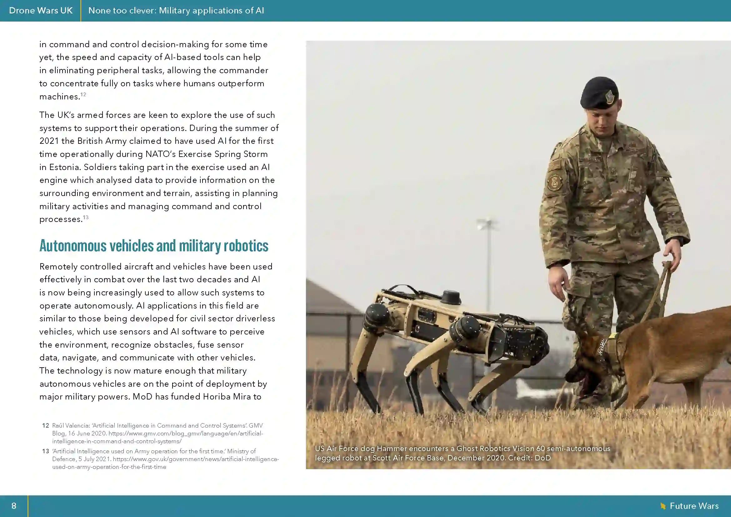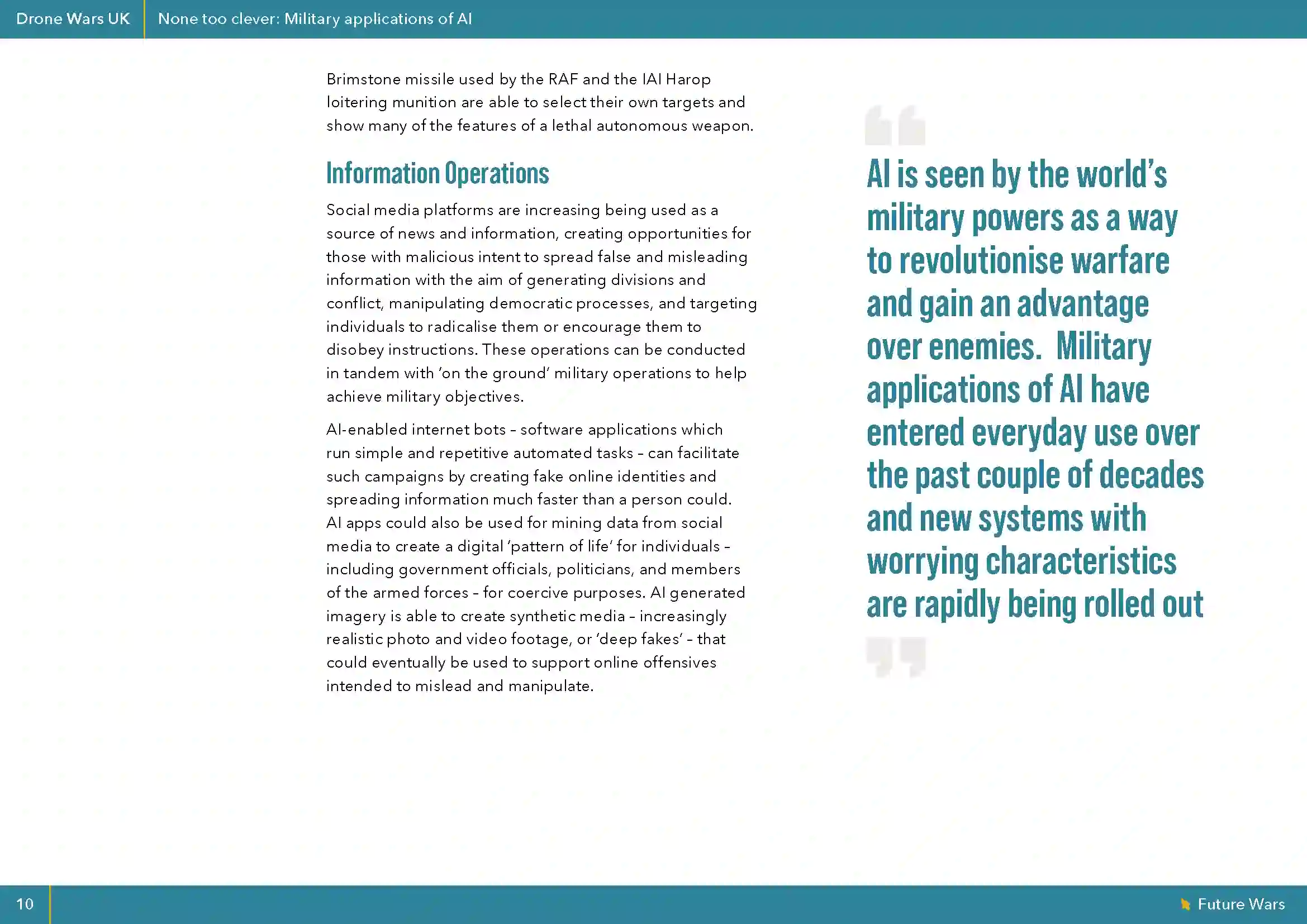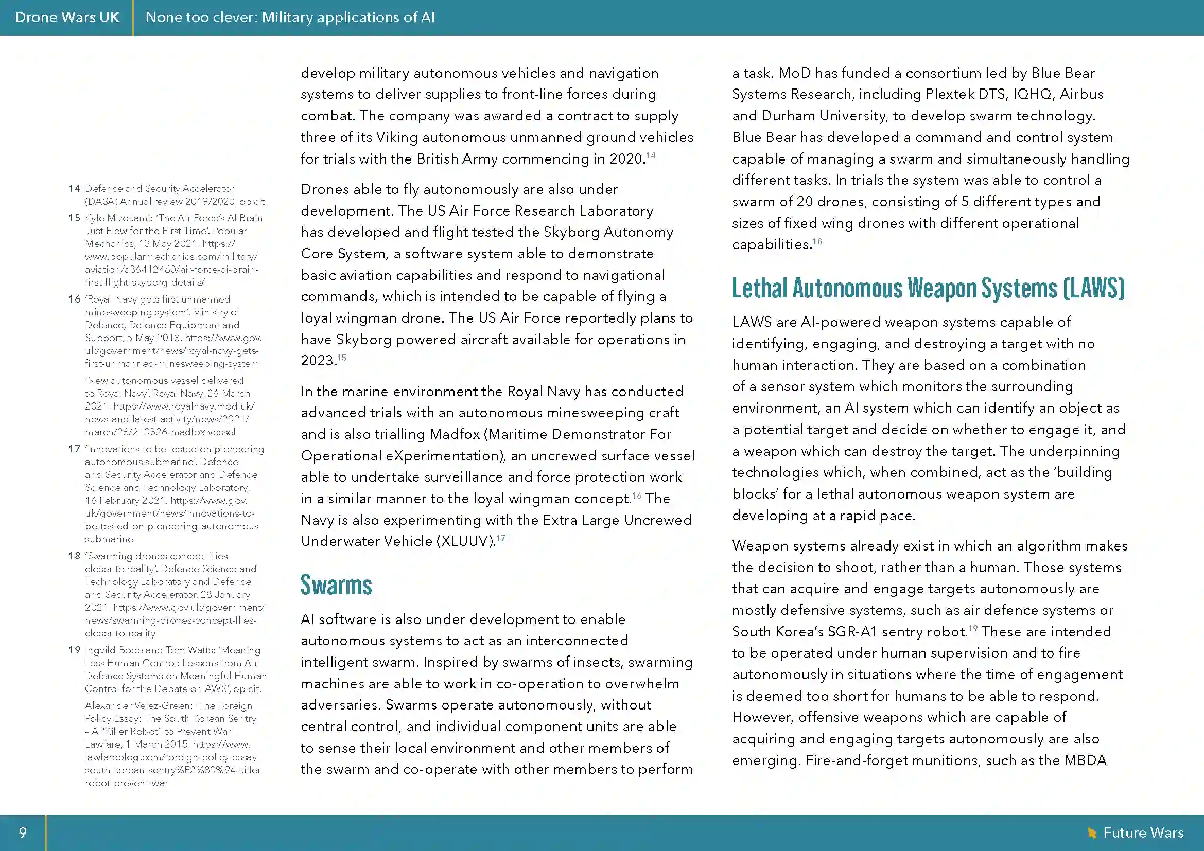 Drone Wars UK 的最新简报着眼于人工智能目前在军事环境中的应用方式,并考虑了所带来的法律和道德、作战和战略风险。