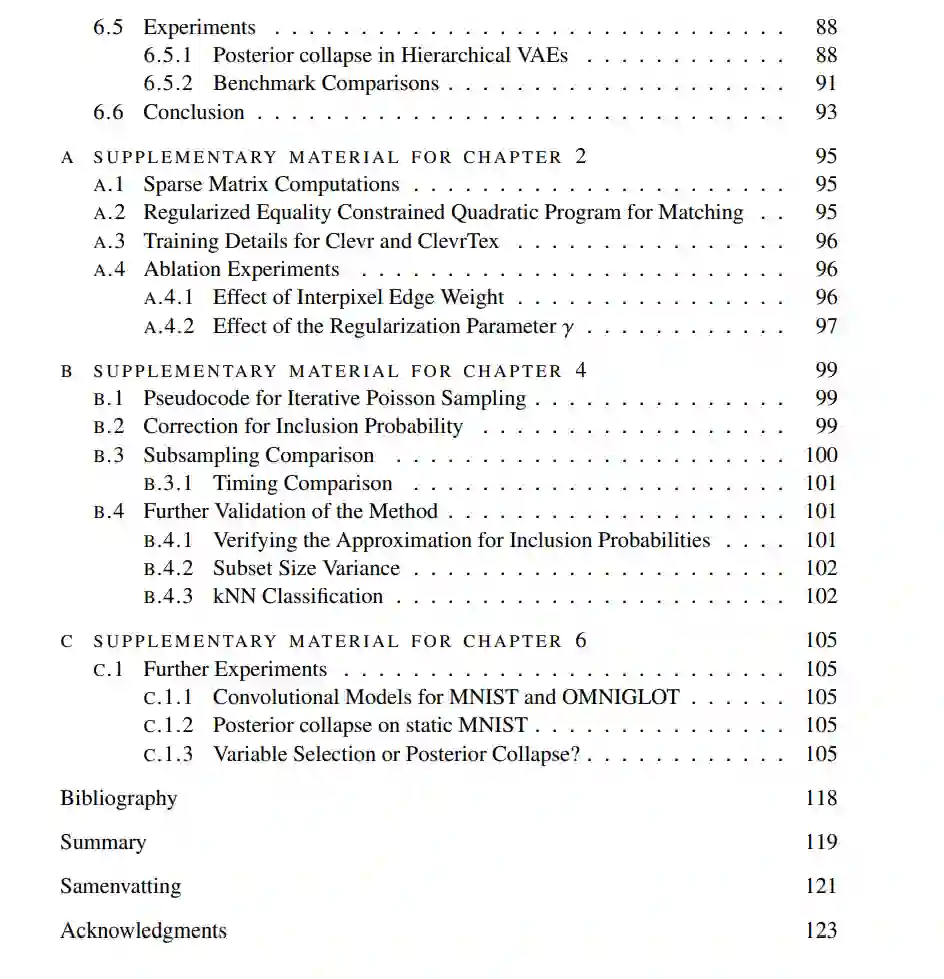 **研究问题3 条件泊松子集抽样是否提供了一种相比序列抽样在神经网络中更高效且可扩展的替代方案? **在第4章中,我们提出了一种既高效又可扩展到大子集大小的序列抽样的替代方法。当前神经网络方法用于抽样子集通常属于序列抽样方法(Tillé, 2006)。使用序列抽样时,如Gumbel分布这样的排名分布被用来独立地对给定全集中的每个元素进行排名,这产生了可能子集上的概率分布。要获得大小为k的子集样本,选择最大(或最小)的k个元素。选择最大k个元素(Top-k)的操作自然不是连续可微的,并且已经为Top-k操作开发了近似可微分程序。然而,这些方法对于抽样大子集在时间和内存方面都是昂贵的。此外,使用这些方法时子集大小参数不是可微分的,且使用逐实例子集大小是麻烦的。在这项工作中,我们提出使用泊松和条件泊松抽样之间的一个可微分替代方案作为序列抽样的替代方案。这种方法效率高且可扩展,内存和计算成本低,且允许可微分的子集大小。接下来,我们考虑具有离散变量的神经网络,并考虑正则化高斯函数以近似离散变量。