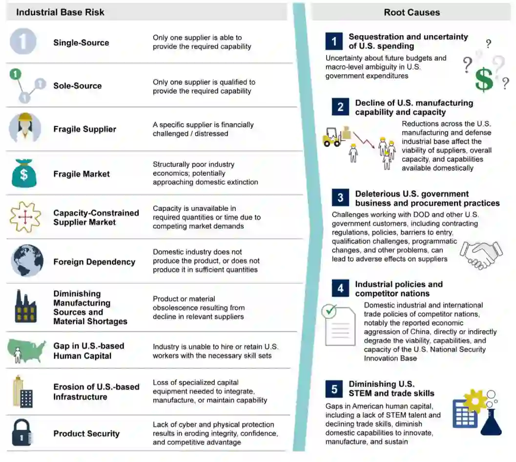 图 1. 美国防部确定的工业基地风险类型和根本原因