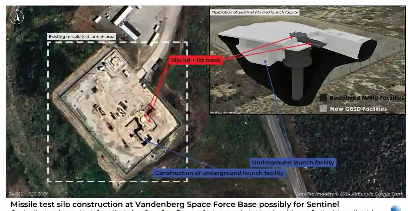 图 1. 在范登堡空军基地建造的导弹试验发射井,可能用于 “哨兵”。(图片来源:美国科学家联合会/空中客车公司,通过谷歌地球)。