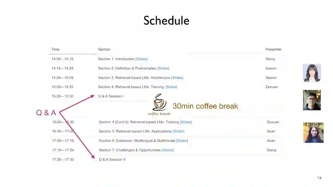 在这个教程中,我们的目标是提供关于基于检索的LMs最近进展的全面而连贯的概述。我们将首先提供基础知识,涵盖LMs和检索系统的基础。然后我们将关注基于检索的LMs在架构,学习方法和应用方面的最近进展。