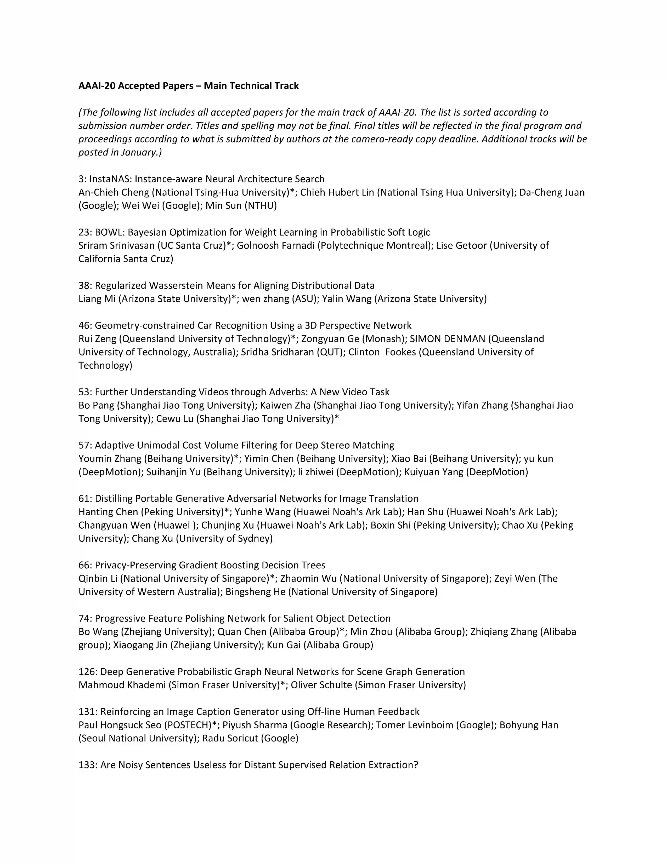 人工智能顶级会议 AAAI 2020 将于 2 月 7 日-2 月 12 日在美国纽约举办,不久之前,AAAI 2020 公布论文介绍结果:今年最终收到 8800 篇提交论文,评审了 7737 篇,接收 1591 篇。最近大会公布了所有接受论文列表,已被接受的AAAI-20主会议的论文