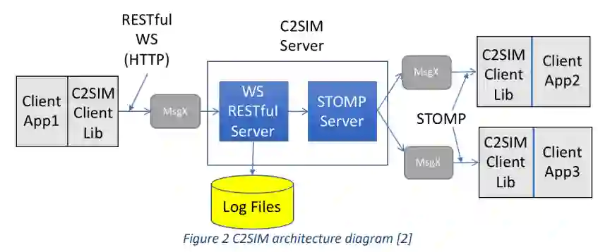 一直以来,模拟需要在 C2 和模拟系统之间设置人工中介。然而,人们一直希望将模拟与 C2 系统直接连接起来,以减少所需的时间和人力。此外,有必要为这种耦合提供一个标准化接口,即 C2SIM,以实现各种模拟和 C2 系统的互换使用。C2SIM 结构如图 2 所示。