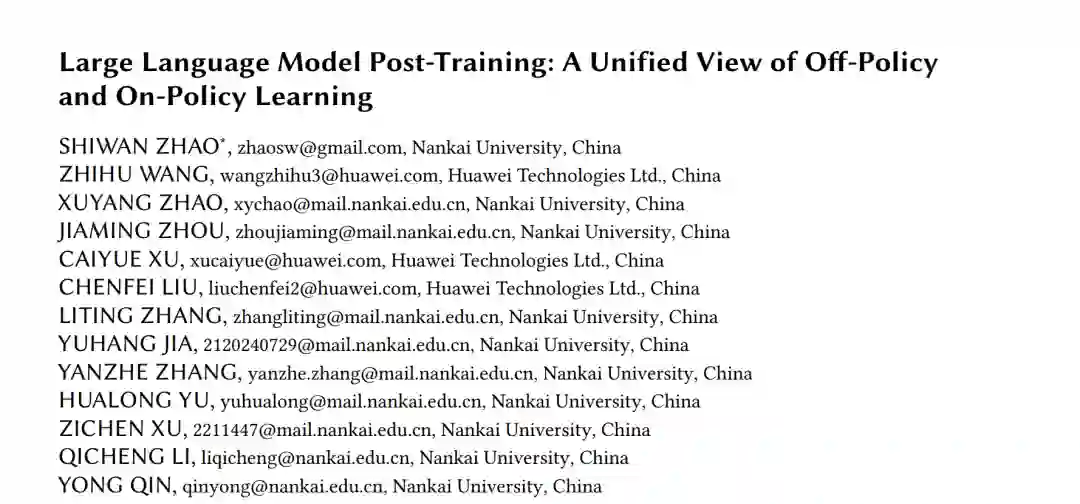 在现代大语言模型(LLM)体系中,仅靠预训练已不足够:后训练已成为将广泛预训练的模型转化为对齐、胜任任务且具备部署能力系统的核心阶段。在实践中,这一阶段通过多种技术实现,包括监督微调(SFT)、偏好优化、强化学习(RL)、过程监督与验证器引导方法、知识蒸馏以及日益复杂的逻辑多阶段流水线 [1–7]。这些方法塑造了模型的指令遵循、推理、安全对齐、可控性及部署效率。近期的系统报告进一步表明,后训练设计已成为前沿系统间能力差异的核心来源 [7–10]。 尽管进展迅速,但对后训练的概念理解仍显碎片化。大量文献仍按历史标签或目标函数家族进行组织:指令微调与偏好优化被分开讨论;来自人类反馈的强化学习(RLHF)及相关对齐导向的方法,往往与带可验证奖励的强化学习(RLVR)及推理导向的方法割裂;而蒸馏通常主要被视为压缩手段,而非更广泛后训练过程的一部分 [11–15]。这种碎片化掩盖了一个日益重要的事实:这些方法并非孤立的替代方案,而是对同一底层对象——由轨迹分布诱导的模型行为——进行干预的不同方式。因此,现有的比较往往停留在目标函数形式层面,而忽略了更深层的行为问题:一种方法能引入何种行为,它能直接观察到哪些失败,以及为什么强大的系统通常结合多种范式而非依赖单一范式。 随着后训练从相对简单的指令微调流水线转向显式的多阶段系统,这些问题变得愈发紧迫。早期的指令微调模型通常被界定为在精选的“指令-回复”示例上进行的监督适配 [1, 16–21]。而近期的系统越来越多地结合了离线监督、偏好优化、在线强化学习、过程或验证器引导的反馈、经验回放增强的策略优化,以及后期阶段的教师引导迁移 [2, 3, 7, 22–24]。因此,该领域看起来不再是一系列孤立目标函数的菜单,而更像是一个系统工程问题:如何建立有用行为,在学习器生成状态下对其进行精炼,并在阶段转换间对其进行保留。 本综述认为,组织这一领域的一种有效方式是首先区分由轨迹来源定义的两种学习范式:离策学习(在外部提供的轨迹上改进模型)和在策学习(在学习器生成的采样序列上改进模型)。这一顶层区分构成了本综述主要方法章节的组织架构。在每个特定范式的章节中,方法按主要算法家族进一步分组以利于阅读和比较。监督接口被保留作为次要描述层,而功能性角色则作为本文的主要解释视角。正式定义将在第 3 节展开;图 1 提供了该组织架构的简明概览。 综述范围。本综述聚焦于通用预训练后的 LLM 后训练方法,特别是旨在提升指令遵循、对齐、推理及其他部署相关能力的方法。我们涵盖了监督微调、基于偏好的学习、RLHF 和 RLVR 式方法、过程监督与验证器引导方法、蒸馏与教师引导迁移,以及混合后训练系统。在必要时,我们也参考了与部署相关的设置(如红队对抗、检索增强推理、工具使用及智能体系统报告),前提是它们能为后训练设计或后训练行为的迁移提供证据 [7, 25–28]。我们不打算对预训练、检索增强、推理时扩展或工具使用作为独立课题进行全面综述,尽管当它们实质性影响后训练设计时,有时会进入讨论。 文献覆盖与筛选说明。本综述是一项具有代表性的、概念驱动的综述,而非穷尽式的系统评价。我们优先考虑对理解后训练设计最有帮助的论文和系统报告,包括基础方法、广泛使用的目标函数、重要的推理与对齐变体、迁移导向的方法以及前沿的多阶段流水线。存档论文构成了本综述概念主张的支柱,而近期的系统报告和精选预印本则被更有选择性地用于说明实践中新兴的设计模式。在本综述中,“离策”与“在策”或“支撑集扩张”与“策略重塑”等分类应被理解为本框架下的主导性分析分配,而非不可更改的标签。