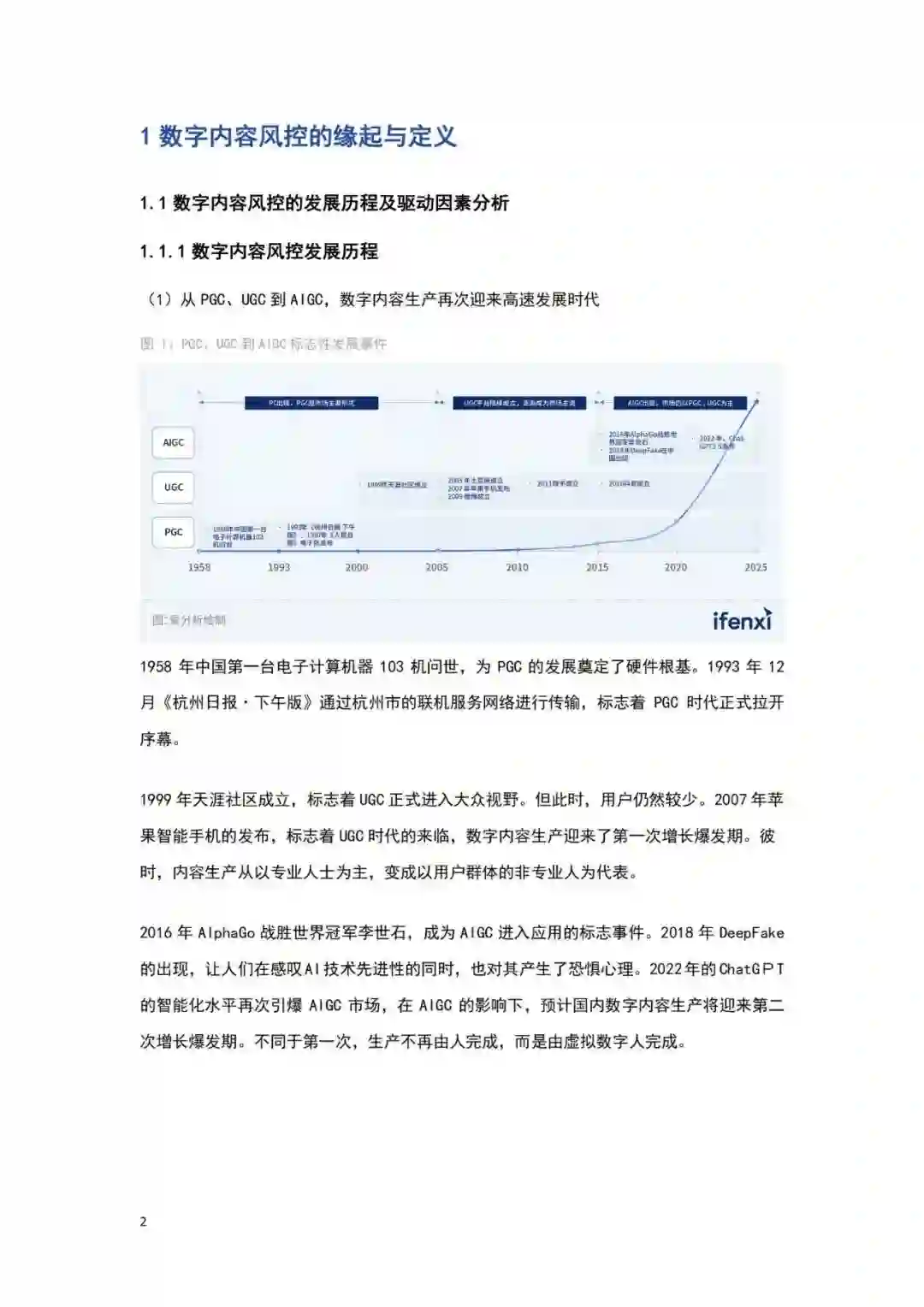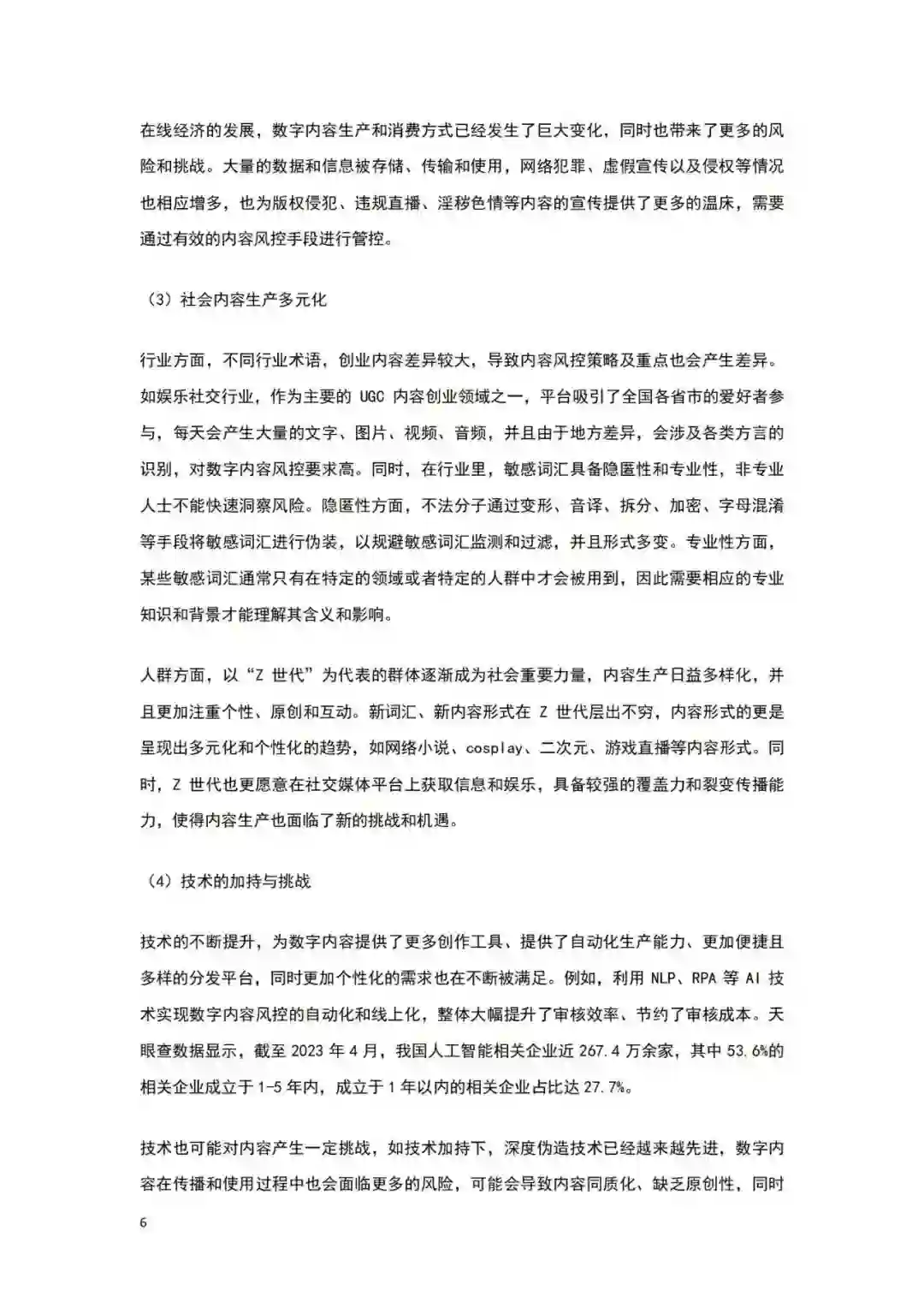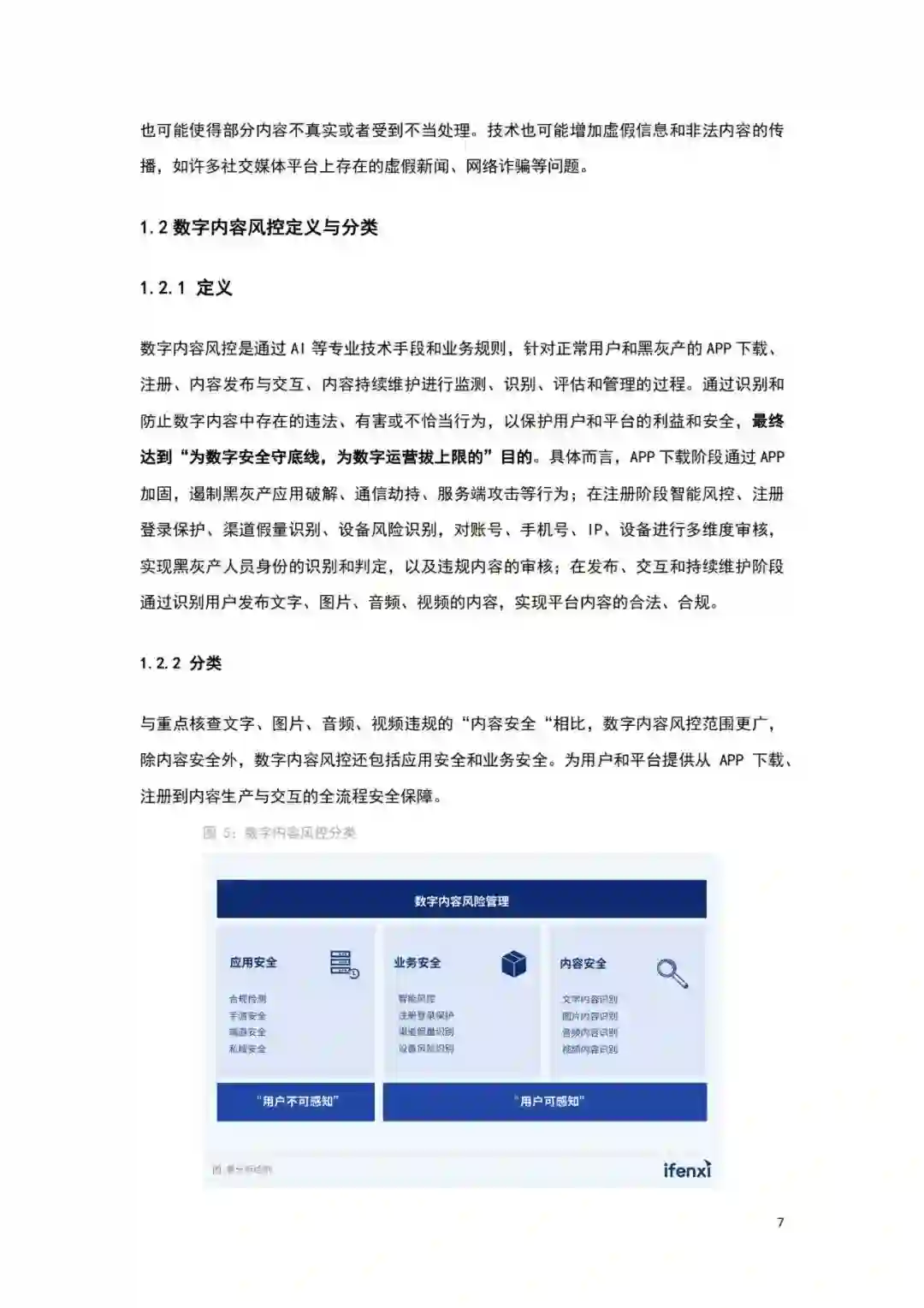 数字内容包含文本、图片、视频等多种形式,起源于计算机问世,并随着互联网、智能手机快速发展,如今,数字内容已经成为个人及企业建立形象、传播价值的必要途径。2022年起,随着ChatGPT的火爆出圈,AI大模型强大的生成能力受到全民关注,数字内容生产方式也历经PGC、UGC后进入AIGC时代,图片、视频、文本等多种形式数量呈指数上升。数字内容生产方式的高度自由和数字内容的极大丰富为企业内容生态运营带来安全挑战,企业面临内容不合规、网络诈骗、黑客攻击、垃圾注册、代刷等风险。如何保护平台内容生态,防御黑灰产侵袭,维护平台声誉,成为企业内容运营的显著痛点。数字内容风控解决方案能满足企业数字内容安全运营需求。数字内容风控解决方案涉及机审、人审、策略运营、舆情监测、蓝军服务和培训等应对措施,旨在通过多维度全面监管,实现对数字内容的有效管理和风险防控。在数字内容风控解决方案落地过程中,各行业对数字内容风控的需求有何差异点?企业在不同的数字内容风控场景下应建立何种能力?如何选择数字内容风控解决方案供应商?以及领先企业的数字内容风控实践效果如何?在此背景下,9月7日,爱分析联合网易智企旗下网易易盾正式发布《2023数字内容风控行业白皮书》。该白皮书作为数字内容风控行业首份白皮书,将对以上问题进行系统回答。白皮书首先介绍了数字内容风控的缘起与定义,然后对企业面临的数字内容风控场景需求以及应具备的能力进行说明,并针对重点行业数字内容风控的需求差异进行分析,接下来白皮书对人机共融的数字内容风控解决方案进行详细阐述,最后详细展示娱乐社交、游戏电竞、汽车出行等行业领先企业的数字内容风控实践案例,为读者提供借鉴。