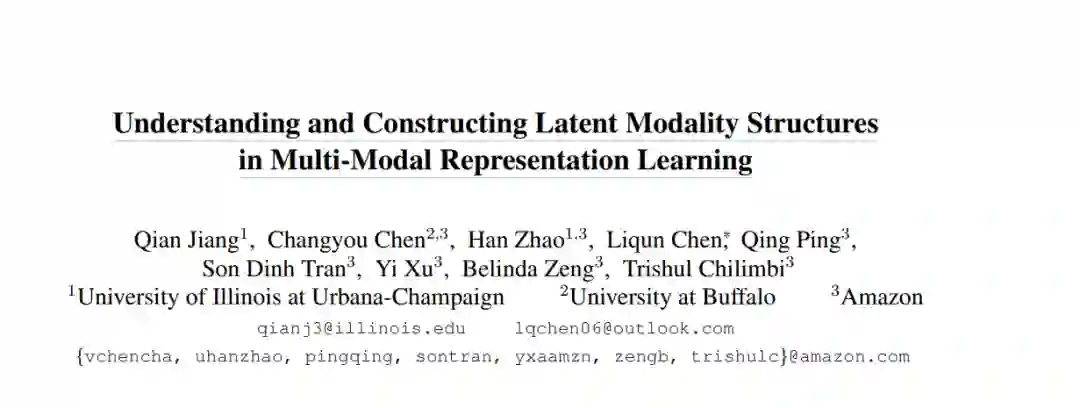 对比损失被越来越多地用于学习来自多种模态的表示。在极限情况下,对比损失的性质鼓励模态在潜空间中精确匹配。然而,模态对齐如何影响下游任务性能仍然是一个开放问题。本文基于信息论论点,首先证明了精确的模态对齐通常对于下游预测任务是次优的。本文认为,更好性能的关键在于有意义的潜在模态结构,而不是完美的模态对齐。本文提出了三种通用的方法来构建潜在模态结构。设计了1)用于模态内正则化的深度特征分离损失;2)模态间正则化的Brownian损失;以及3)模态内和模态间正则化的几何一致性损失。在两种流行的多模态表示学习框架上进行了广泛的实验:基于CLIP的双塔模型和基于ALBEF的融合模型。在各种任务上测试了该模型,包括零样本/少样本图像分类、图像-文本检索、视觉问答、视觉推理和视觉蕴含。该方法比现有方法取得了一致的改进,证明了所提出方法在潜模态结构正则化上的有效性和泛化性。