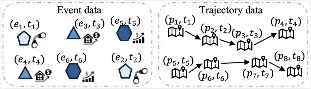 时空数据结合了空间和时间的元素,可以揭示跨越时空现象的见解,广泛应用于环境监测、交通分析、流行病学、社会科学和城市规划等领域。这些数据通过地理坐标和时间戳表示,便于分析模式、趋势和关系。时空数据可以分为事件数据、轨迹数据、点数据和栅格数据四类。