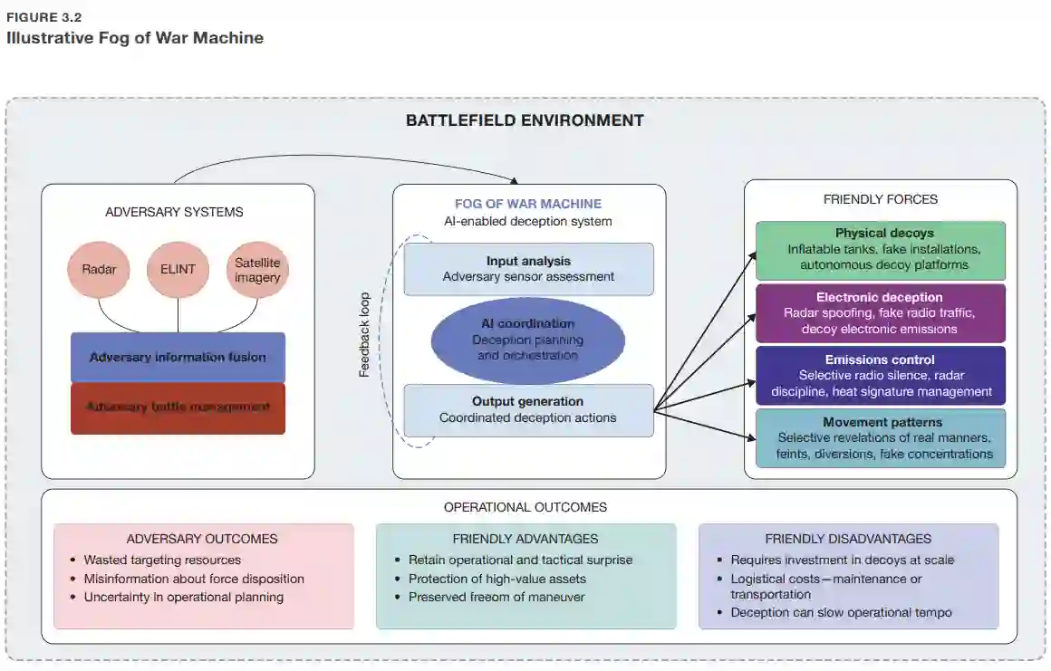 - 应加大对可实现更广泛应用规模和欺骗的新能力的研究与实验投入。例如,探索用于空战任务的、不依赖跑道的可消耗无人战机,以及用于对抗对手人工智能赋能传感的新型人工智能欺骗工具。即使人工智能技术仍在发展中,利用本报告所识别趋势的机会现已存在。
