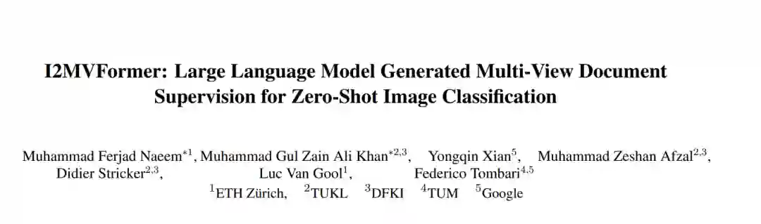 最近的工作表明,来自在线来源的非结构化文本(文档)可以作为零样本图像分类的有用辅助信息。然而,这些方法需要访问像维基百科这样的高质量来源,并且仅限于单一来源的信息。在网络规模的文本上训练的大型语言模型(LLM)显示出令人印象深刻的能力,可以将其所学的知识用于多种任务。本文提供了一种使用LLM为零样本图像分类模型提供文本监督的新视角。LLM提供了来自不同注释器的一些文本描述作为示例。LLM以这些示例为条件,为每个类生成多个文本描述(称为视图)。所提出的模型I2MVFormer用这些类视图学习多视图语义嵌入,用于零样本图像分类。类的每个文本视图都提供了补充信息,允许模型学习高度区分性的类嵌入。与基线模型相比,I2MVFormer更擅长使用LLM的多视图文本监督。I2MVFormer在三个公共基准数据集上建立了一种新的无监督语义嵌入的零样本图像分类技术。
