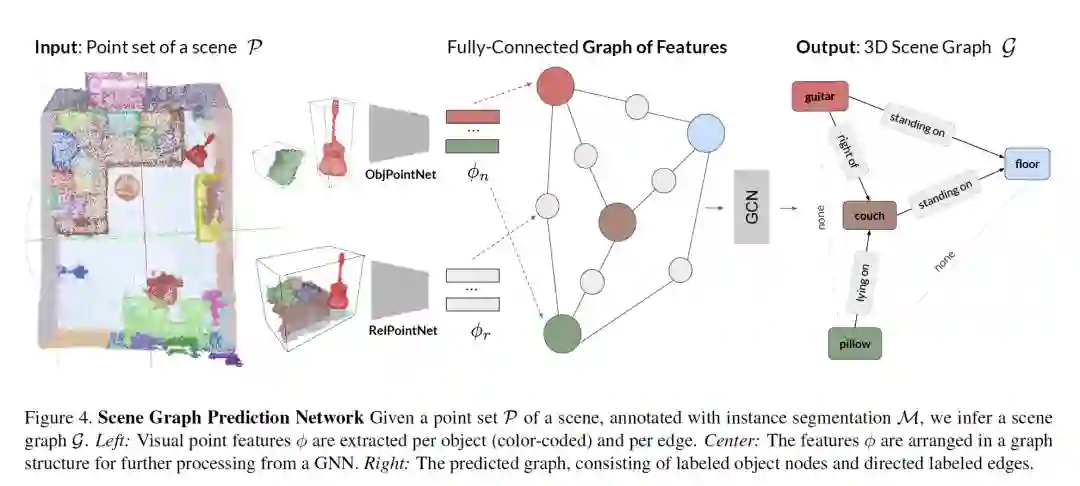 摘要:场景理解(scene understanding)一直是计算机视觉领域的研究热点。它不仅包括识别场景中的对象,还包括识别它们在给定上下文中的关系。基于这一目标,最近的一系列工作解决了3D语义分割和场景布局预测问题。在我们的工作中,我们关注场景图,这是一种在图中组织场景实体的数据结构,其中对象是节点,它们的关系建模为边。我们利用场景图上的推理作为实现3D场景理解、映射对象及其关系的一种方式。特别地,我们提出了一种从场景的点云回归场景图的学习方法。我们的新体系结构是基于PointNet和图卷积网络(GCN)的。此外,我们还介绍了一个半自动生成的数据集3DSSG,它包含了语义丰富的三维场景图。我们展示了我们的方法在一个领域无关的检索任务中的应用,其中图作为3D-3D和2D-3D匹配的中间表示。