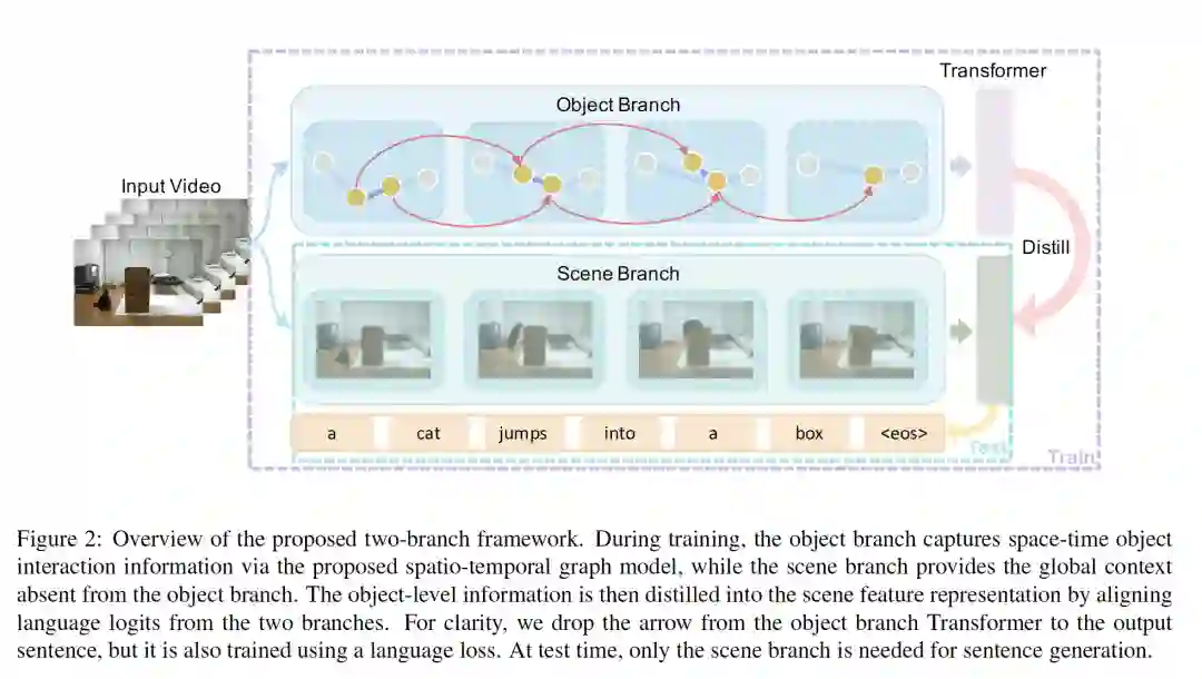 摘要:视频描述生成是一项具有挑战性的任务,需要对视觉场景有深刻的理解。最先进的方法使用场景级或对象级信息生成字幕,但没有显式建模对象交互。因此,它们通常无法做出基于视觉的预测,并且对虚假相关性敏感。在本文中,我们为视频字幕提出了一种新颖的时空图模型,该模型利用了时空中的对象交互作用。我们的模型建立了可解释的连接,并且能够提供明确的视觉基础。为了避免对象数量变化带来的性能不稳定,我们进一步提出了一种对象感知的知识提炼机制,该机制利用局部对象信息对全局场景特征进行正则化。通过在两个基准上的广泛实验证明了我们的方法的有效性,表明我们的方法在可解释的预测上产生了具有竞争力的性能。