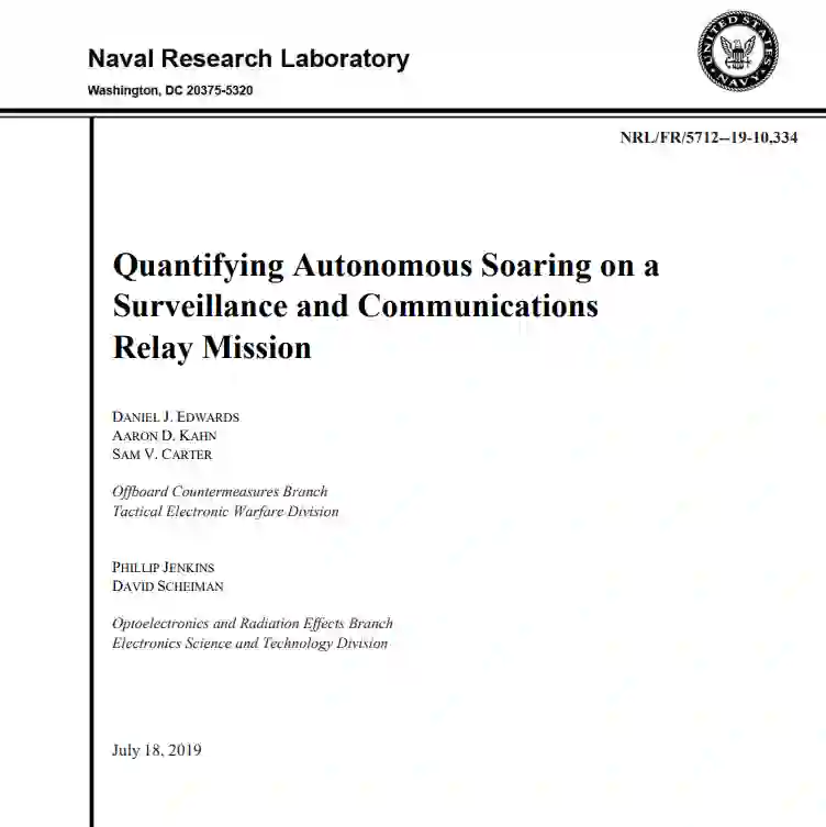监视和通信中继任务对无人驾驶飞机的可用能源供应提出了要求。自主飞行算法和太阳能光伏系统都提供了一种从环境中(分别从热上升气流和太阳辐射中)提取能量的方法,以延长飞机储存能量极限之外的续航时间。此外,多架飞机可以通过共享信息提高飞行成功率。本报告介绍了一个由多架协调飞行器组成的演示系统,每架飞机都具有自主飞行算法和集成的太阳能光伏发电系统。计划用两架飞机进行飞行测试,以量化同时使用自主飞行和太阳能系统时的任务性能。