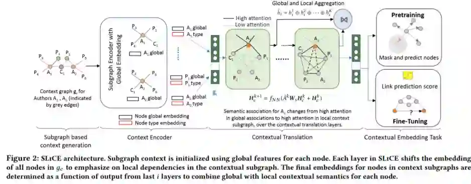 异构网络的表示学习方法为每个节点产生一个低维向量嵌入,通常在所有涉及节点的任务中都是固定的。许多现有的方法关注于以一种与下游应用程序无关的方式获取节点的静态向量表示。然而,在实践中,下游任务(如链接预测)需要特定的上下文信息,这些信息可以从与节点相关的子图中提取出来,作为任务的输入。为了解决这一挑战,我们提出了SLiCE,这是一个使用整个图的全局信息和局部注意驱动机制来学习上下文节点表示的静态表示学习方法的框架。我们首先通过引入高阶语义关联和屏蔽节点以自监督的方式预训练我们的模型,然后针对特定的链接预测任务微调我们的模型。我们不再通过聚合所有通过元路径连接的语义邻居的信息来训练节点表示,而是自动学习不同元路径的组合,这些元路径表征了特定任务的上下文,而不需要任何预先定义的元路径。SLiCE在几个公开可用的基准网络数据集上显著优于静态和上下文嵌入学习方法。通过广泛的评价,我们也证明了上下文学习的可解释性、有效性和SLiCE的可扩展性。
