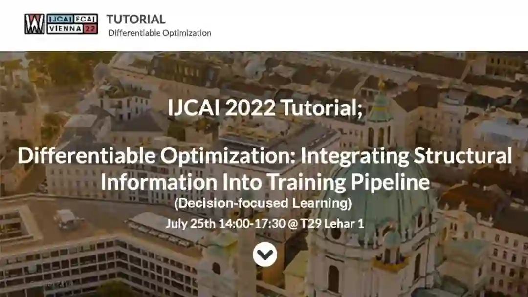 本教程从可微优化的基础开始,讨论如何将优化转换为可微构建块,以便在更大的体系结构中使用。可微优化的直接好处是将优化公式中的结构信息和领域知识集成到机器学习模型中。本教程的第一部分涵盖了各种应用,将优化作为机器学习模型中的可微单元,以适当地处理强化学习、控制、最优运输和几何中的操作任务。实验表明,可微优化方法比神经网络更能有效地模拟操作过程。本教程的第二部分侧重于将各种工业和社会挑战作为可区分的优化层集成到训练管道中。这种机器学习模型和应用驱动优化的集成导致端到端学习,以决策为中心的学习,训练模型直接优化目标应用中的性能。最后,本教程总结了可微优化的一系列应用及其计算限制,并为读者提供了各种开放的方向。