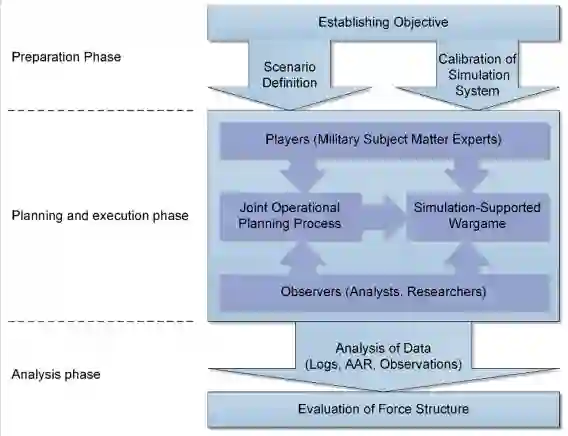 该方法由准备阶段、规划和执行阶段以及分析阶段组成。在过去的10年中,该方法通过使用更详细和更现实的仿真模型,以及在仿真行动前复制和监测规划过程,以更深入地了解测试的部队结构的威慑效果,而逐渐发展起来。