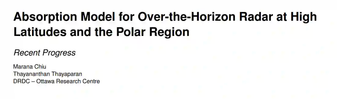 在高纬度地区,电离层受动态变化条件的影响。因此,为了在高纬度和极地使用超视距雷达(OTHR),模型很难充分反映该区域的实际情况。由于这些原因,加拿大国防研究与发展部(DRDC)资助开发了加拿大北极高纬度电离层模型(CHAIM),旨在用于地磁纬度 50度以上的地点。然而,这些模型在表示低层电离层方面仍然存在重大缺陷。这项工作详细介绍了为解决实证 CHAIM(E-CHAIM)和同化 CHAIM(A-CHAIM)的缺陷而设计的新贡献:一个 E 区域极光粒子降水模块和一个 D 区域模型。本科学报告中介绍的信号吸收研究使用了最新更新的 E-CHAIM,以生成改进的电子密度剖面图,并更准确地模拟电子-离子和电子-中性碰撞。电离层吸收随当地时间、太阳周期和季节而变化。利用各种吸收计算方法对这些变化进行建模,以确定最佳运行参数,从而在这些不断变化的条件下最大限度地提高接收信号功率。传统的吸收模型会将 30 MHz 频率下计算出的吸收量按比例放大到相关频率,从而导致吸收计算结果被高估。根据阿普顿-哈特里公式开发了一种新的、更精确的吸收模型。本研究介绍了阿普顿-哈特里公式,该公式对所需频率下沿射线路径的吸收进行了积分。