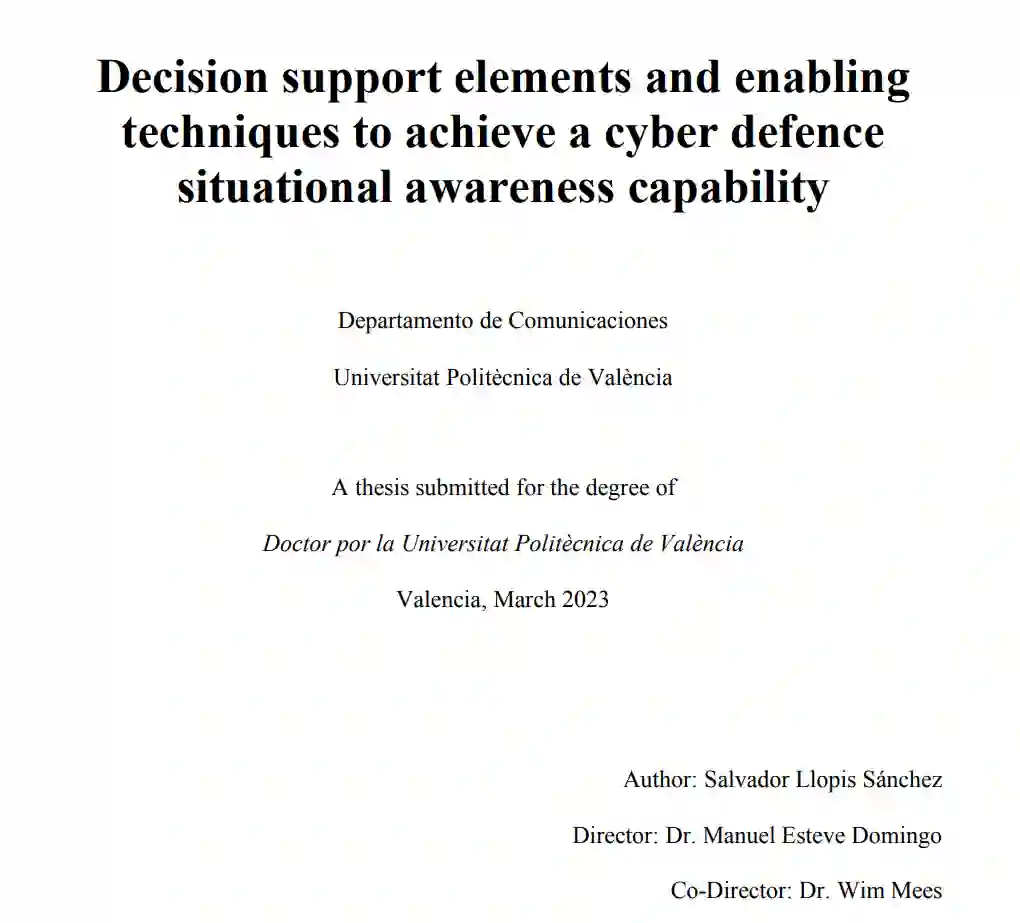 本博士论文详细分析了提高网络防御态势感知所需的决策要素,特别强调了网络安全运营中心(SOC)分析人员的感知和理解。提出了基于数据流网络流取证(NF3)的两种不同架构。第一种架构使用集合机器学习技术,第二种则是算法复杂度更高的机器学习变体(λ-NF3),可提供更强大的防御框架来抵御对抗性攻击。这两项建议都旨在有效地自动检测恶意软件并进行后续的事件管理,在接近所谓的下一代认知计算 SOC(NGC2SOC)方面取得了令人满意的结果。为保护组织的计算机网络而进行的事件监督和监测必须辅以可视化技术。在这种情况下,本论文基于任务导向的指标和程序,使用基于模糊逻辑的专家系统,对三维图片进行了表述。确切地说,在实施网络防御解决方案时,考虑到一个组织的使命、资源和任务的相关性,以做出更明智的决策,最新技术证明存在严重缺陷。这项研究工作最终为改进网络防御决策提供了两个关键领域:一个是用于评估解决方案参数的可靠、完整的验证和确认框架,另一个是根据网络杀伤链和 MITRE ATT & CK 标准开发的合成数据集,该数据集可统一参考网络攻击的各个阶段。