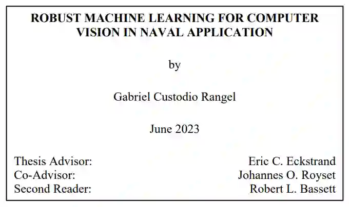 我们的研究主要集中在将 CV 原理应用于海军领域,特别是解决二元分类问题,以显示船只的存在与否。这构成了更广泛的监视工具的重要组成部分,并采用了一种名为 "Rockafellian 风险最小化"(RRM)[1] 的新策略。RRM 方法旨在应对海上监控等复杂多变环境中固有的数据集标签损坏所带来的挑战。我们方法的核心是交替方向启发式(ADH),这是一种双管齐下的策略,可依次优化不同的变量集。这种两步迭代的过程可调整神经网络权重并操纵数据点概率,从而有效隔离潜在的数据损坏。其结果是建立了一个更强大、更准确的海上监视和探测系统,从而增强了海军行动中的决策和态势感知能力。