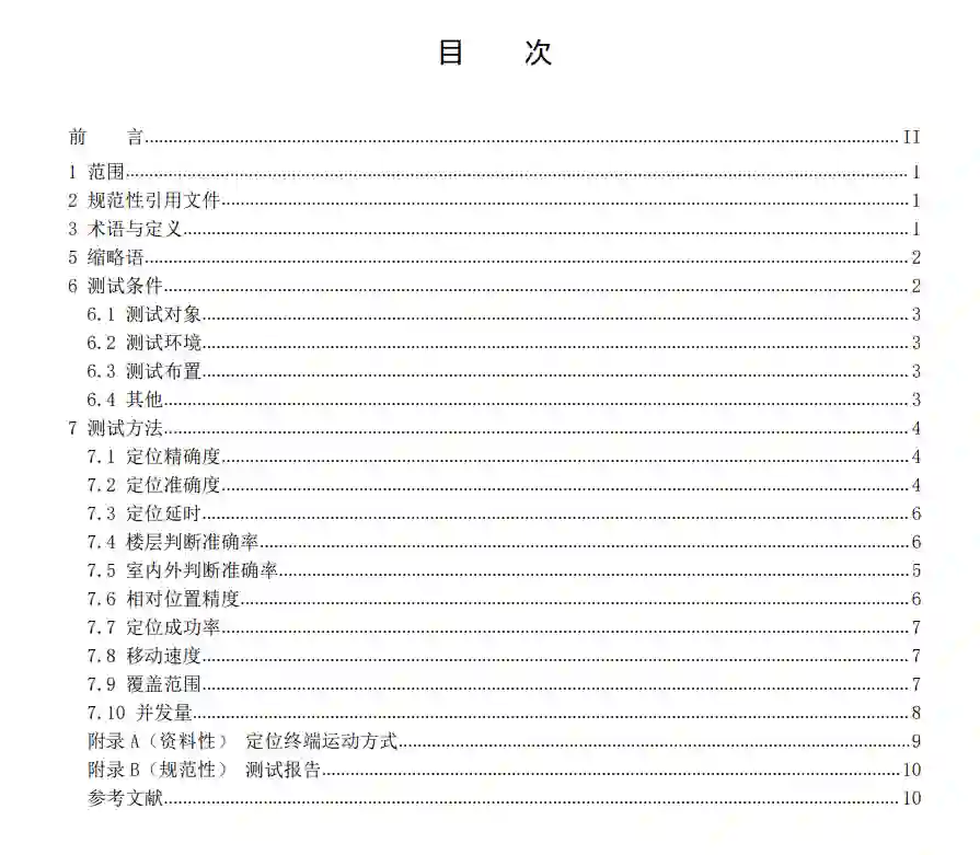 定位是位置服务、万物互联、人工智能应用的核心技术之一。随着人们活动的空间越来越庞大和复杂,人们对定位的需求不仅限于室外场景,利用实时定位系统进行室内定位或室内外一体化定位的需求愈加迫切。实时定位系统在商场导购、停车场停车、资产管理、智能制造、智慧医疗、应急救援等领域需求强烈,具有广阔的应用前景。目前,与室外主要依靠卫星定位不同,室内定位技术呈现出百花齐放的场景,主要包括Wi-Fi、蓝牙、惯性导航、地磁场、超宽带、可见光、计算机视觉、RFID、超声波等。不同的室内定位技术存在各自的优势和局限,通过使用单一定位技术或组合使用多种定位技术可满足不同应用场景对定位精度、覆盖范围、成本、可靠性的不同要求。随着实时定位系统在室内定位应用的普及,系统测试方面的标准不统一成为影响市场发展的障碍。由于缺乏统一的测试评价依据,而各技术提供方的测试场景、测试方式和度量条件千差万别,导致行业内各技术提供方的交流与竞争缺乏共同的基础,用户也难以判断各技术提供方的系统是否满足其应用需求,在一定程度上制约了室内定位技术的发展。因此,有必要制定实时定位系统在室内外场景中的测试条件和测试方法标准,对实时定位系统的测试与评估进行科学的规范和引导。本文件正式发布后,将为实时定位系统产品进行测试检验或认证服务提供有效指导,有助于指导制定实时定位系统应用相关标准,从而促进实时定位系统行业的规范治理和健康发展。