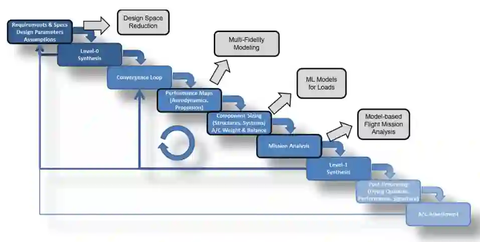 图1:包含选定机器学习潜力的理想化总体飞机设计流程