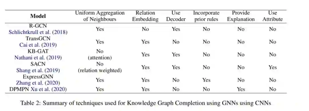 图已被广泛用于可视化真实世界的数据。在将ML技术应用于图像和文本方面已经取得了巨大进展,其中一些已成功应用于图形(如Kipf和Welling(2017)、Hamilton等人(2017)、Velickovic等人(2018)。基于该方法的启发,许多基于图神经网络的方法被提出用于KBC任务中获取知识图的邻域。在这次调查中,我们的目的是研究这些工作。