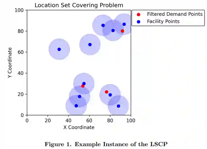 在商业、医疗、物流及军事行动中,为覆盖需求而进行选址是至关重要的,因此学术界已就如何从大量备选位置中选择覆盖位置展开了探讨。在国防部背景下,这些概念延伸至在最佳位置建立基地,以确保在“进入、驻扎与飞越”方面实现最大控制力;网络中父节点的布置;以及应用于电信、卫星通信和西太平洋战区的海军控制等领域。选址覆盖问题的传统模型假设理想条件、完全信息以及执行覆盖策略的完美能力,其问题参数包括潜在的需求点和供给点位置,以及一个供给点是否能覆盖一个特定的需求点,目标是以最小成本覆盖所有位置。在国防部运作的复杂环境中,当考虑位置部署时,一个简单天真的模型仅仅考虑位置本身,这使得其他行为体能够利用选址集合覆盖模型所规定的行动方案获利。