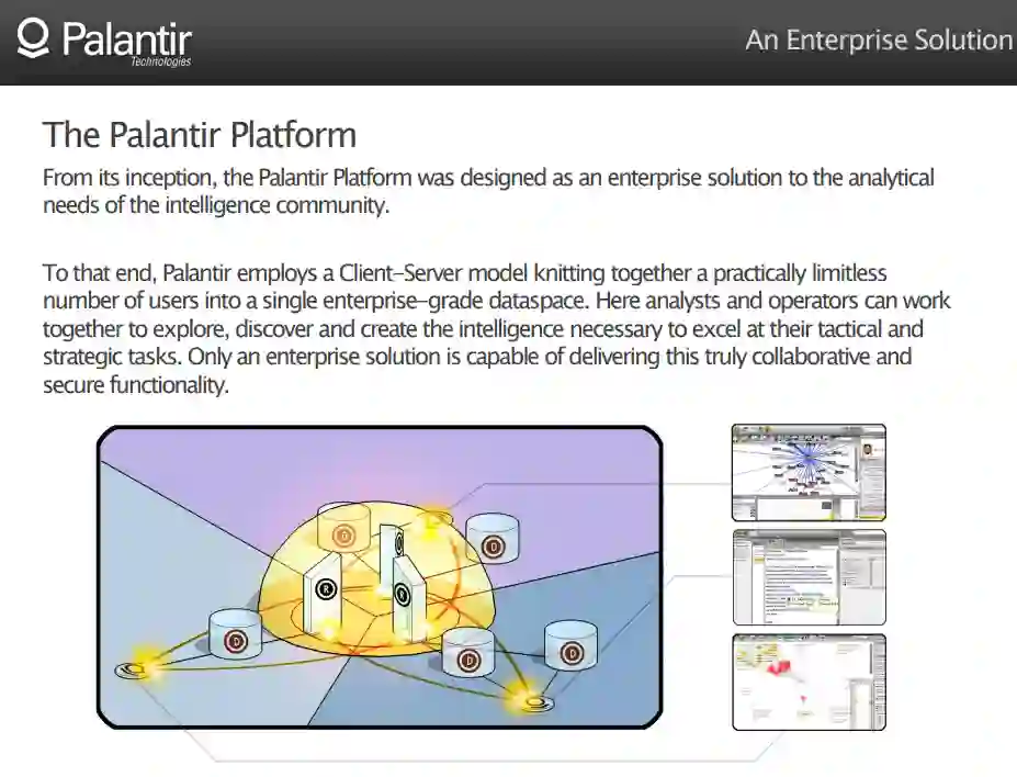 帕兰泰尔技术公司成立于2004年,其创立基于一个简单的理念——人脑是识别信息模式最有效的方式,而计算机是处理海量数据最有效的方式。当人类能够在一个分析软件平台的计算能力之上充分发挥其智力,并找到这一最佳结合点时,执行分析的能力将可能发生革命性变革。正是基于这一简单理念,帕兰泰尔平台应运而生——这是一个用于执行分析的端到端解决方案。